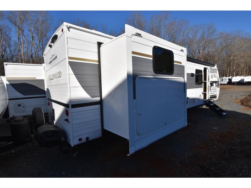 The Wildwood travel trailers are packed with hassle-free camping amenities! There are a variety of floorplans to choose from so you can find the layout that best fits your needs. The heated and enclosed Accessibelly will help protect against the elements and debris during transport, and the exterior retro/metal redesign is sure to be eye-catching! There are stylish roller shades inside, along with updated backsplash, elegant curtain rods and curtains, plus many more interior comforts! Choose a Wildwood travel trailer today for quality and value!