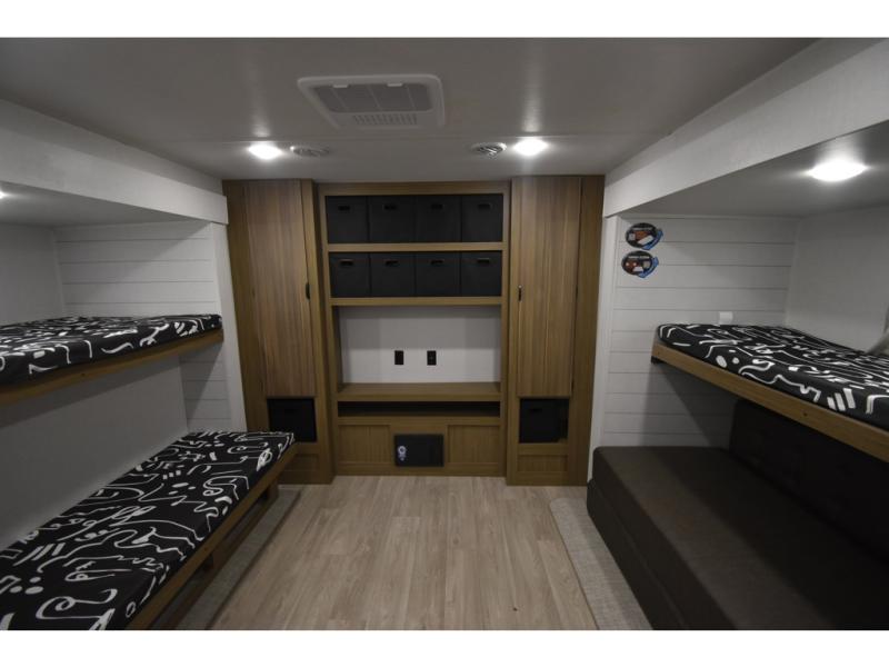 What I liked most: We enjoy the roominess of interior, bunkroom large open area has lots of options available for usage and like having solid privacy doors for both bed areas, but favorite part is the large out side kitchen.
