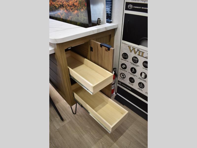 The Wildwood travel trailers are packed with hassle-free camping amenities! There are a variety of floorplans to choose from so you can find the layout that best fits your needs. The heated and enclosed Accessibelly will help protect against the elements and debris during transport, and the exterior retro/metal redesign is sure to be eye-catching! There are stylish roller shades inside, along with updated backsplash, elegant curtain rods and curtains, plus many more interior comforts! Choose a Wildwood travel trailer today for quality and value!