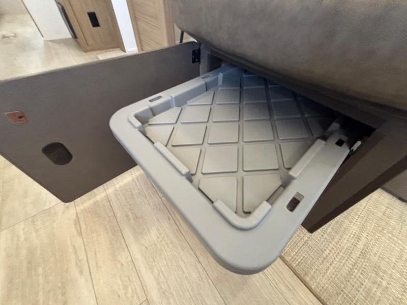 Get ready for your next weekend getaway to your local state park with this double-slide Wildwood travel trailer. The private bunkhouse is perfect for the kids, and you can enjoy the front private bedroom with a custom king bed with Versa-Tilt. This unit also includes a Versa Lounge and Versa Flex table for relaxing, dining, and sleeping. The double-bowl sink is perfect for cleaning up afterward, and you'll love how convenient the full bath is with its own exterior entry door.