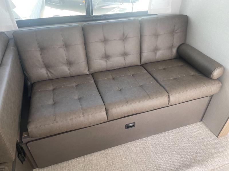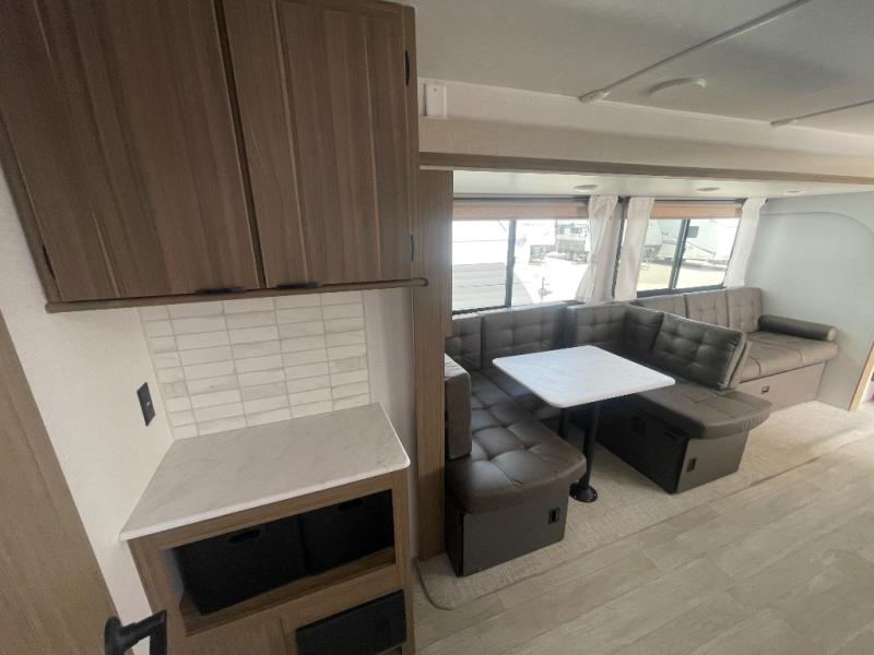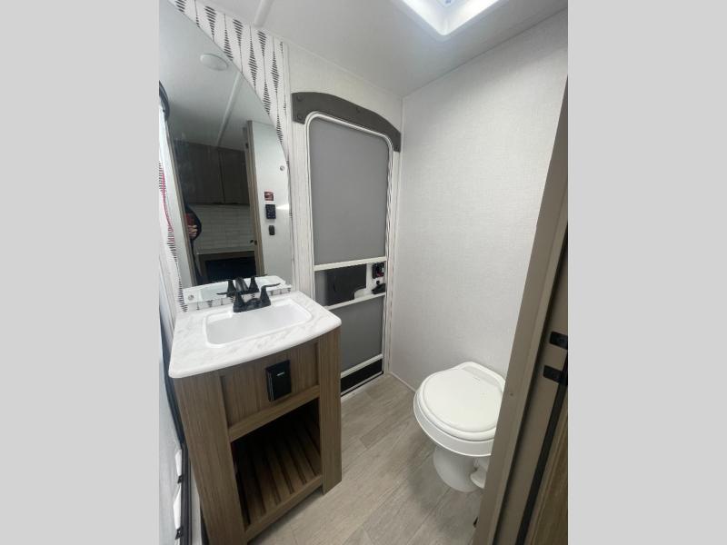 Get ready for your next weekend getaway to your local state park with this double-slide Wildwood travel trailer. The private bunkhouse is perfect for the kids, and you can enjoy the front private bedroom with a custom king bed with Versa-Tilt. This unit also includes a Versa Lounge and booth dinette for relaxing, dining, and sleeping. The sleek single bowl sink is perfect for cleaning up afterward, and you'll love how convenient the full bath is with its own exterior entry door.