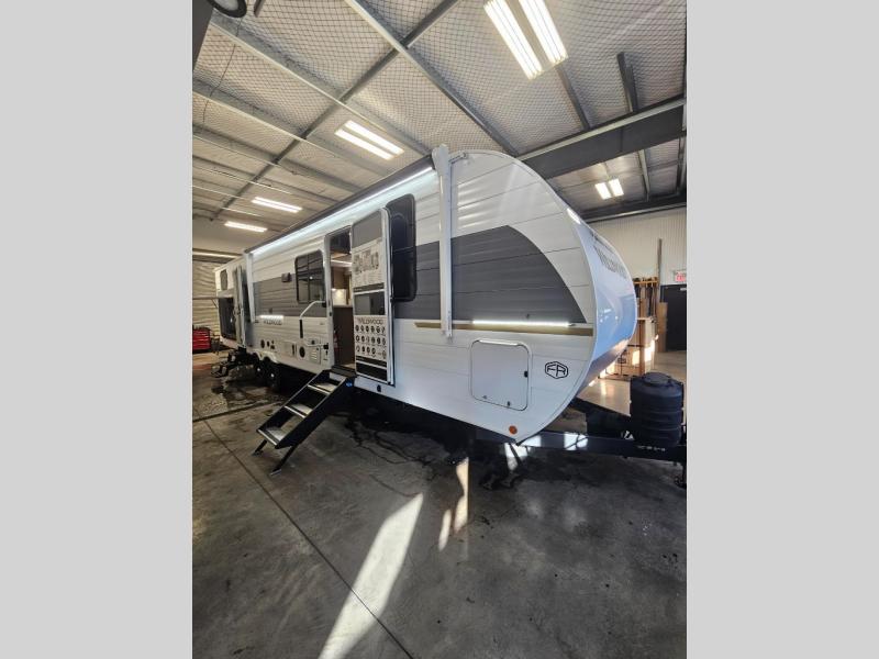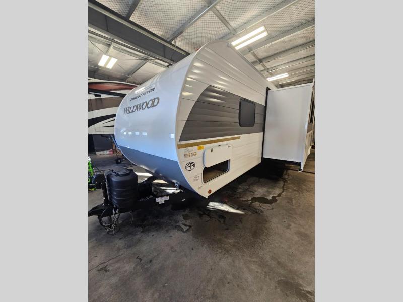 The Wildwood travel trailers are packed with hassle-free camping amenities! There are a variety of floorplans to choose from so you can find the layout that best fits your needs. The heated and enclosed Accessibelly will help protect against the elements and debris during transport, and the exterior retro/metal redesign is sure to be eye-catching! There are stylish roller shades inside, along with updated backsplash, elegant curtain rods and curtains, plus many more interior comforts! Choose a Wildwood travel trailer today for quality and value!
