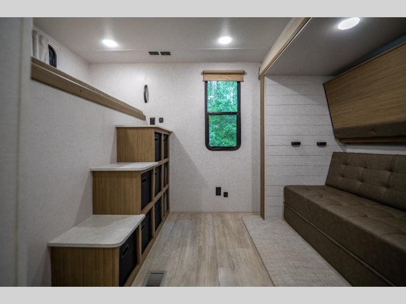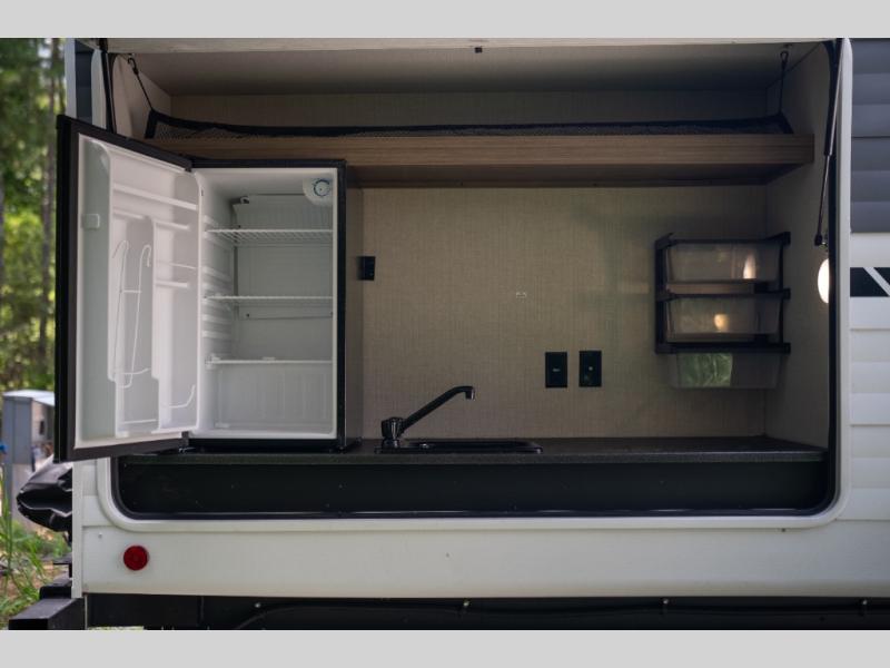 The Wildwood travel trailers are packed with hassle-free camping amenities! There are a variety of floorplans to choose from so you can find the layout that best fits your needs. The heated and enclosed Accessibelly will help protect against the elements and debris during transport, and the exterior retro/metal redesign is sure to be eye-catching! There are stylish roller shades inside, along with updated backsplash, elegant curtain rods and curtains, plus many more interior comforts! Choose a Wildwood travel trailer today for quality and value!
