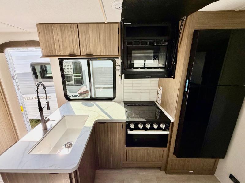 The Wildwood travel trailers are packed with hassle-free camping amenities! There are a variety of floorplans to choose from so you can find the layout that best fits your needs. The heated and enclosed Accessibelly will help protect against the elements and debris during transport, and the exterior retro/metal redesign is sure to be eye-catching! There are stylish roller shades inside, along with updated backsplash, elegant curtain rods and curtains, plus many more interior comforts! Choose a Wildwood travel trailer today for quality and value!