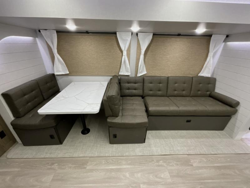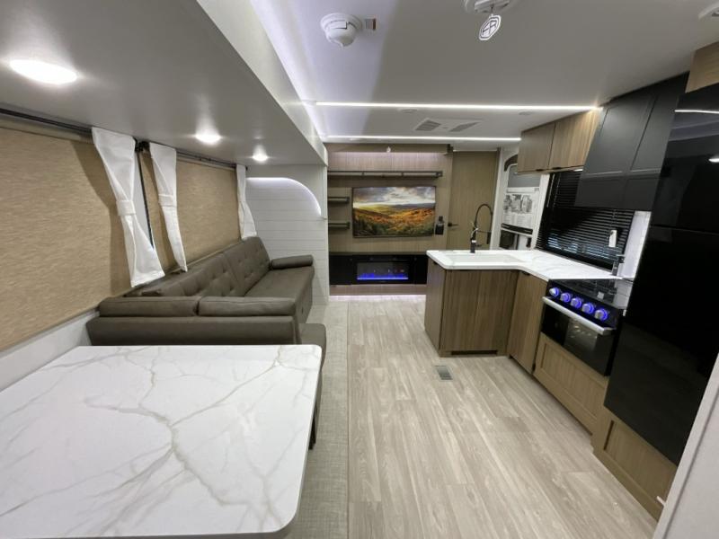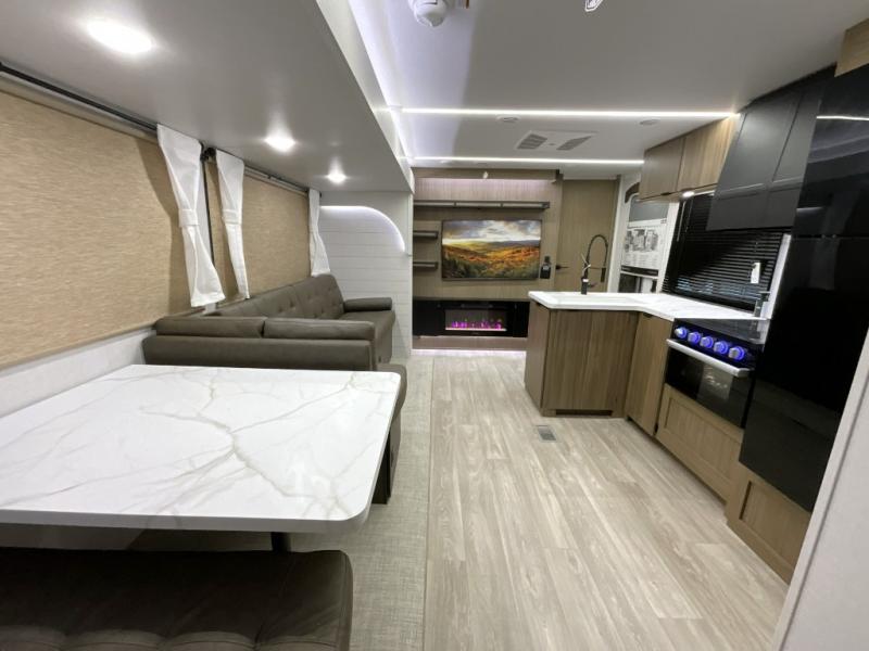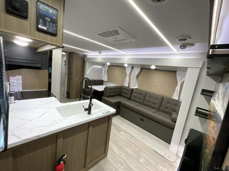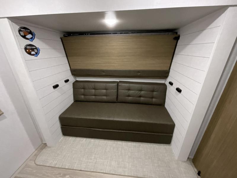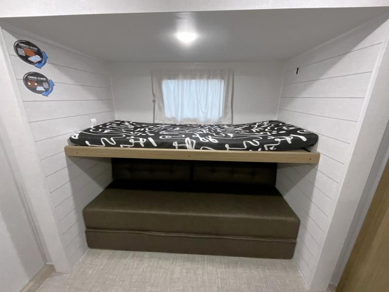 Have you been searching for the perfect travel trailer for your family? This Wildwood might just be the RV you have been looking for. Just imagine hiking, biking and playing horse shoes at your favorite campground to return to plenty of space for everything thanks to the triple slides, one in each room. The kiddos will surely head to the rear private bunkhouse to claim a bunk bed while you take a nap on the custom king bed in the front bedroom. You can make dinner on the outside kitchen or in the full kitchen inside. Everyone can play games or relax on the Versa Lounge before heading outside to see the stars. Check it out!