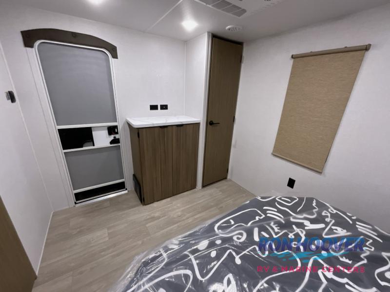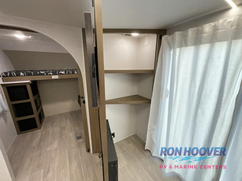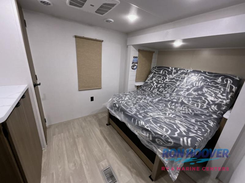 You're going to love this Wildwood travel trailer and its unique layout. The private bunkhouse is up front, and the private bedroom is at the rear of the unit. You will love the walk-through bath that leads into the bedroom, and the custom king bed with Versa Tilt slide out provides more interior space. The kids will love the front private bunkhouse with its Versa queen bed and Versa bunk beds. This model also includes an 18' awning that will shade you during the day and create an outdoor living space you are sure to love.