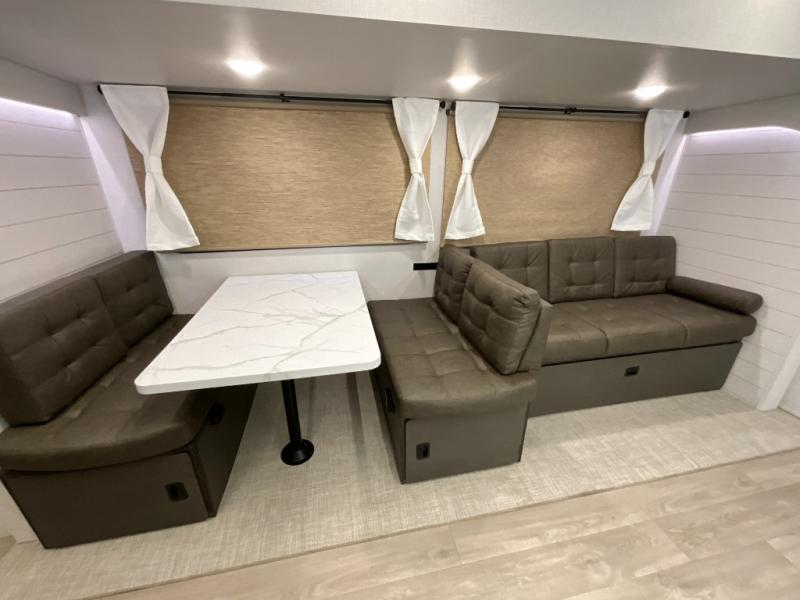 The Wildwood travel trailers are packed with hassle-free camping amenities! There are a variety of floorplans to choose from so you can find the layout that best fits your needs. The heated and enclosed Accessibelly will help protect against the elements and debris during transport, and the exterior retro/metal redesign is sure to be eye-catching! There are stylish roller shades inside, along with updated backsplash, elegant curtain rods and curtains, plus many more interior comforts! Choose a Wildwood travel trailer today for quality and value!