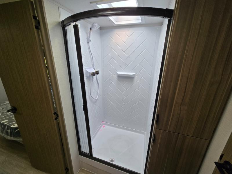 You're going to love this Wildwood travel trailer and its unique layout. The private bunkhouse is up front, and the private bedroom is at the rear of the unit. You will love the walk-through bath that leads into the bedroom, and the custom king bed with Versa Tilt slide out provides more interior space. The kids will love the front private bunkhouse with its Versa queen bed and Versa bunk beds. This model also includes an 18' awning that will shade you during the day and create an outdoor living space you are sure to love.