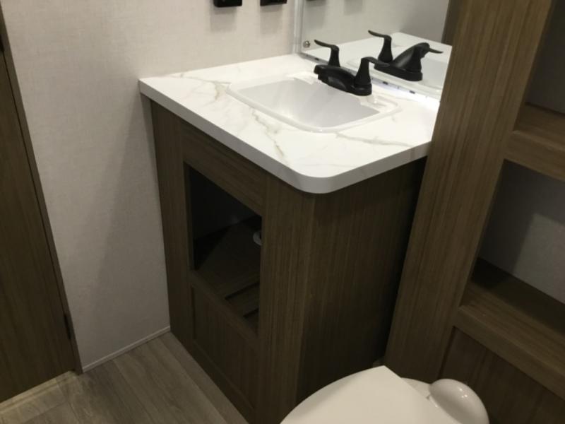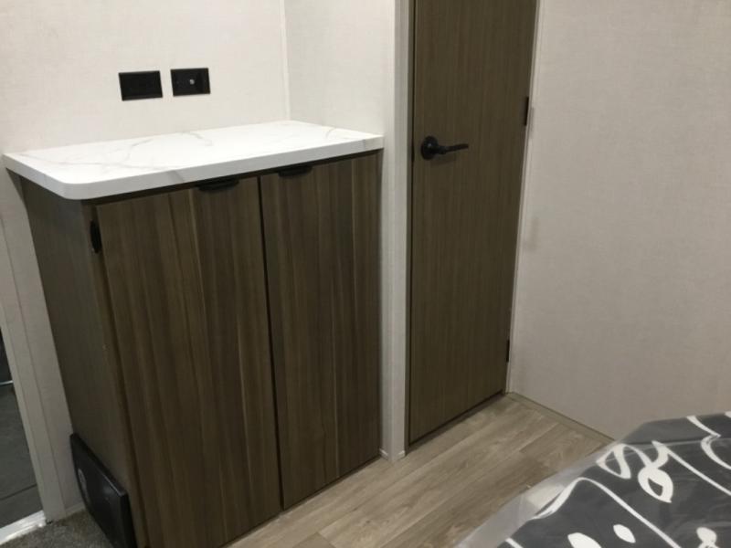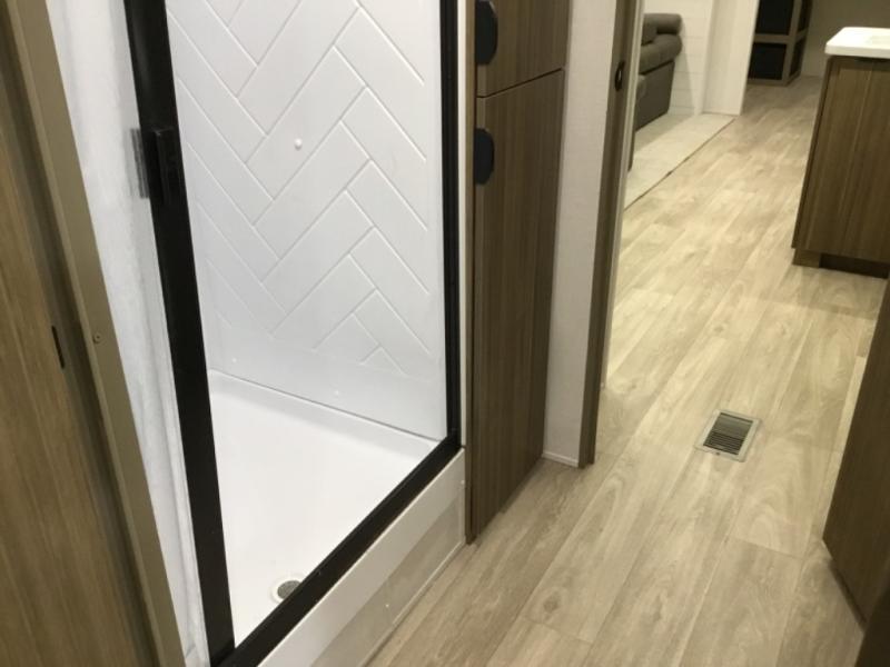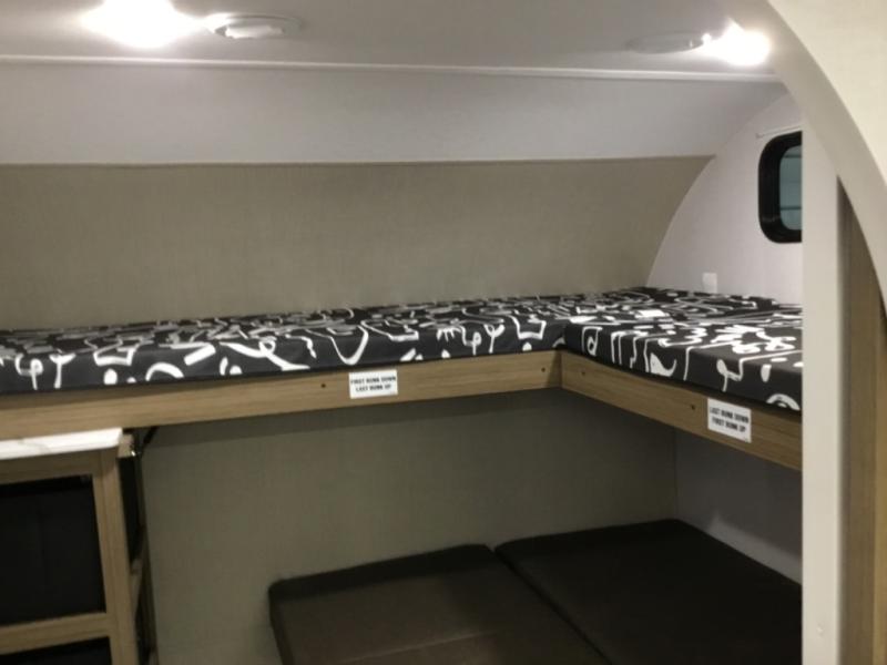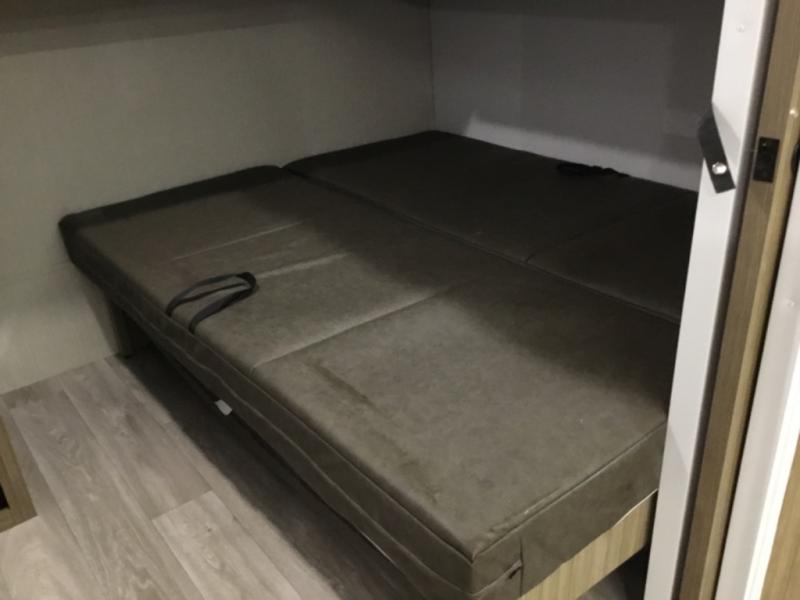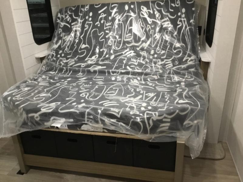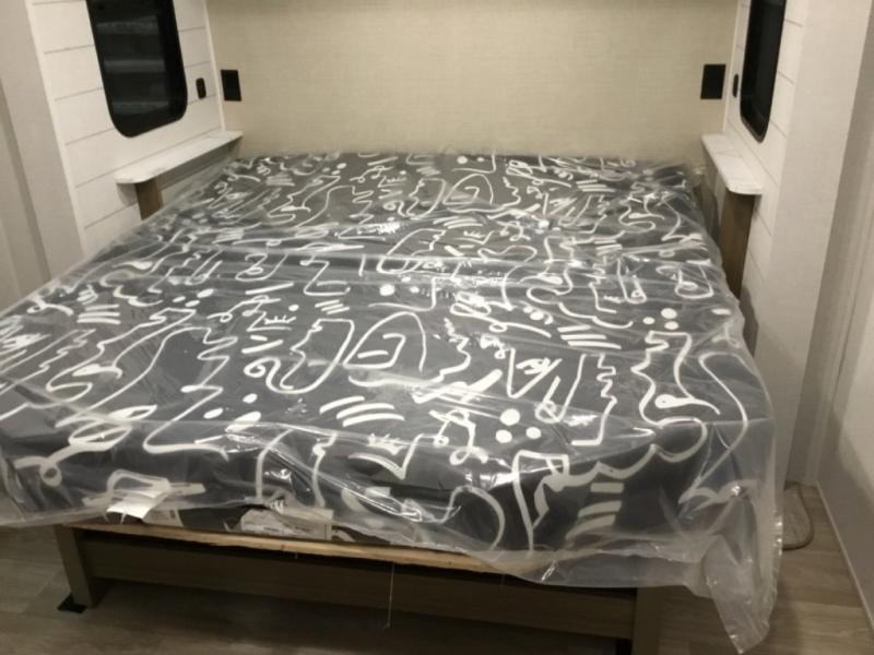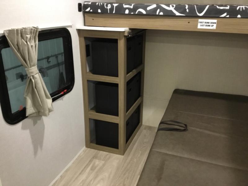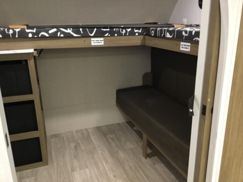 You're going to love this Wildwood travel trailer and its unique layout. The private bunkhouse is up front, and the private bedroom is at the rear of the unit. You will love the walk-through bath that leads into the bedroom, and the custom king bed with Versa Tilt slide out provides more interior space. The kids will love the front private bunkhouse with its Versa queen bed and Versa bunk beds. This model also includes an 18' awning that will shade you during the day and create an outdoor living space you are sure to love.