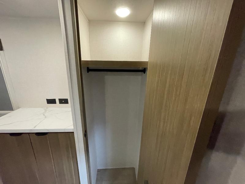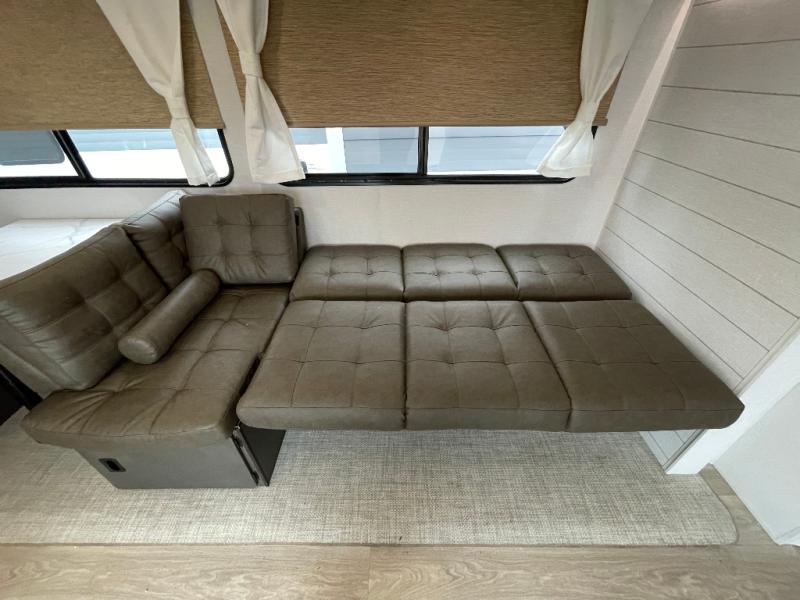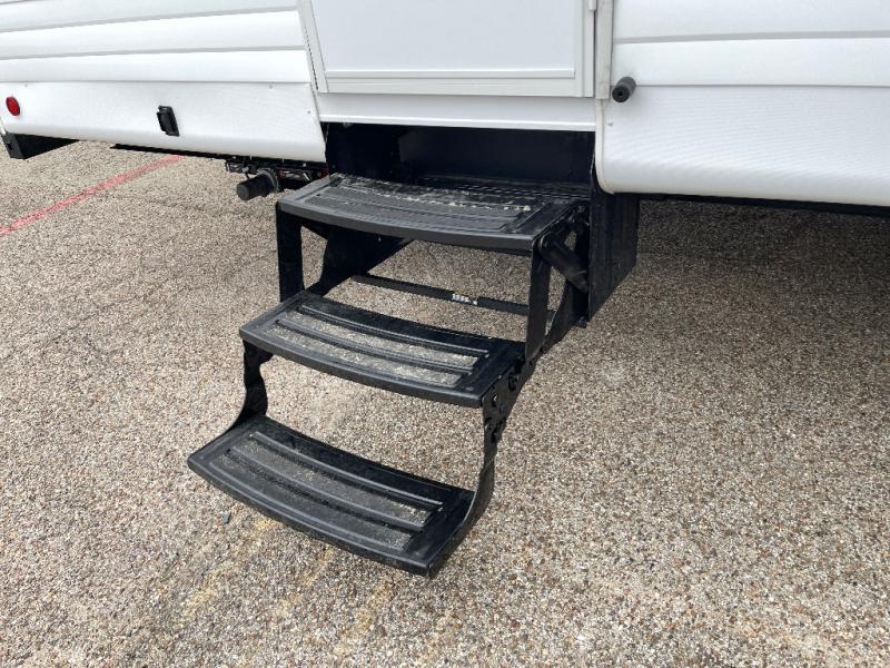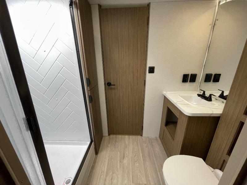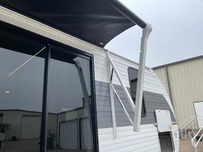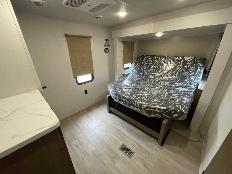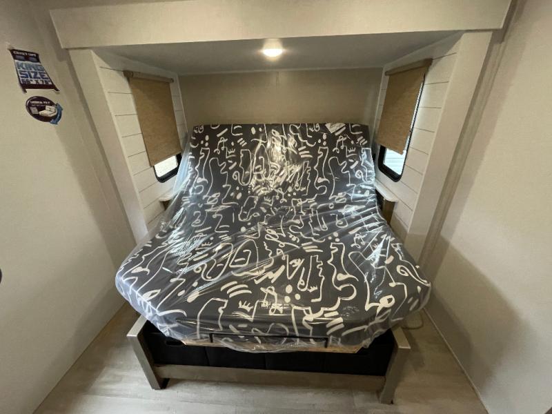 You're going to love this Wildwood travel trailer and its unique layout. The private bunkhouse is up front, and the private bedroom is at the rear of the unit. You will love the walk-through bath that leads into the bedroom, and the custom king bed with Versa Tilt slide out provides more interior space. The kids will love the front private bunkhouse with its Versa queen bed and Versa bunk beds. This model also includes an 18' awning that will shade you during the day and create an outdoor living space you are sure to love.