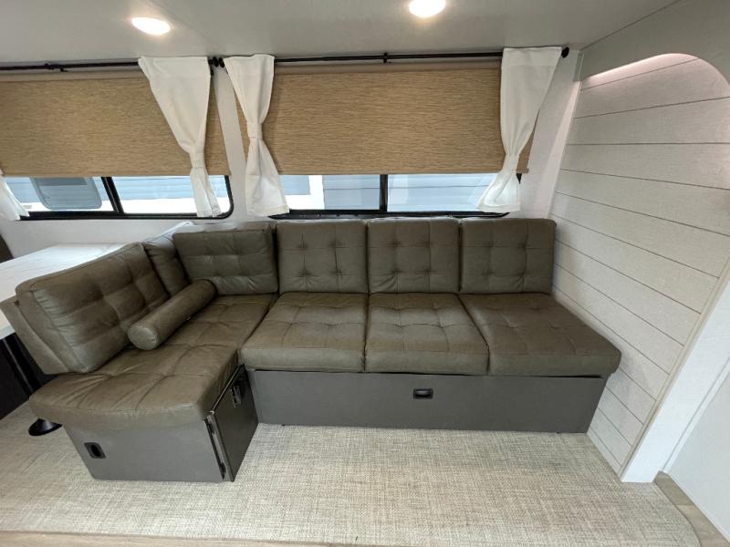 The Wildwood travel trailers are packed with hassle-free camping amenities! There are a variety of floorplans to choose from so you can find the layout that best fits your needs. The heated and enclosed Accessibelly will help protect against the elements and debris during transport, and the exterior retro/metal redesign is sure to be eye-catching! There are stylish roller shades inside, along with updated backsplash, elegant curtain rods and curtains, plus many more interior comforts! Choose a Wildwood travel trailer today for quality and value!