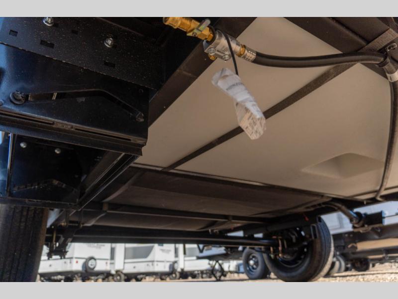The Wildwood FSX 135ICE keeps things simple in the best way. The front east-to-west custom king bed gives you real sleeping space, with storage at the foot of the bed and overhead to keep essentials tucked away and the space feeling open.
