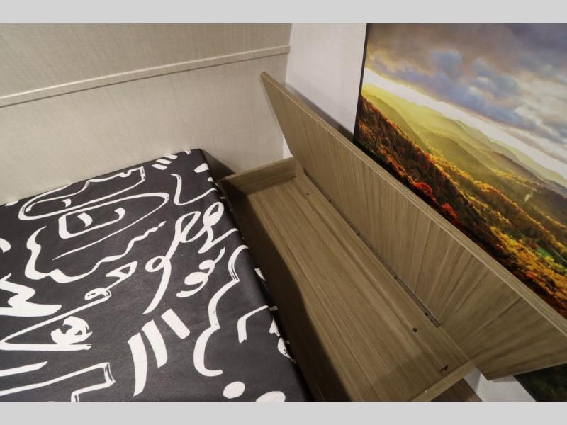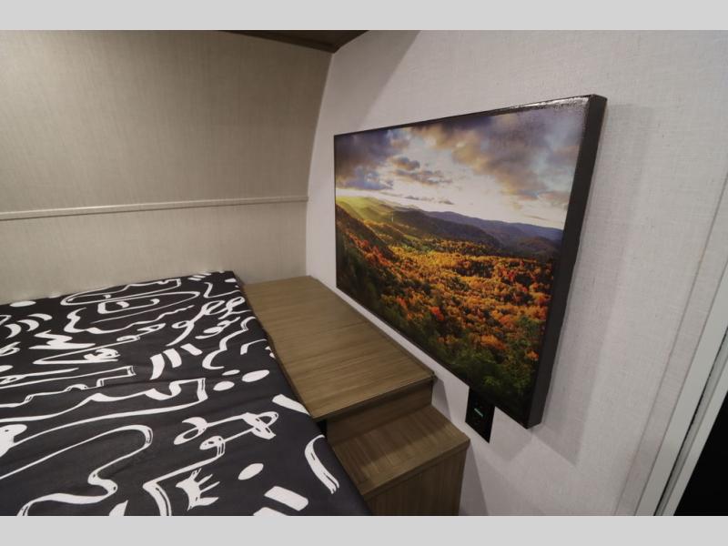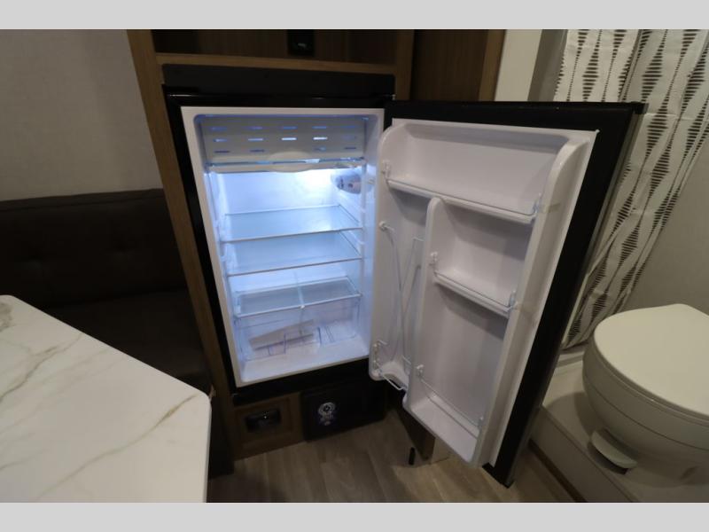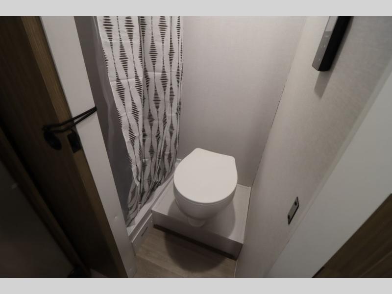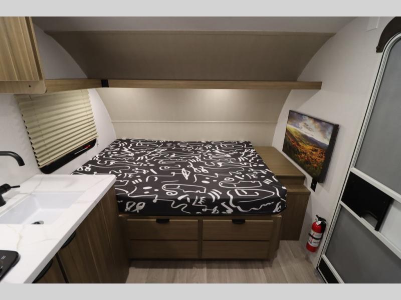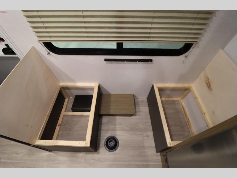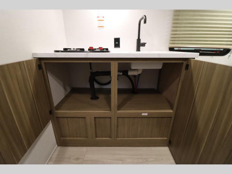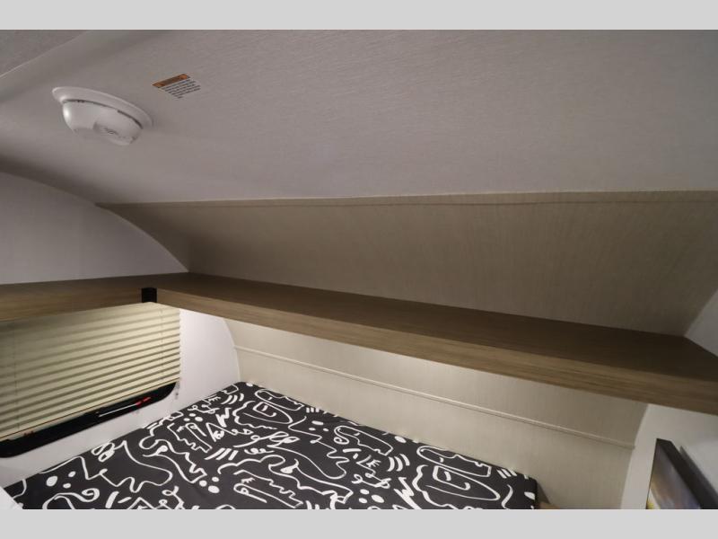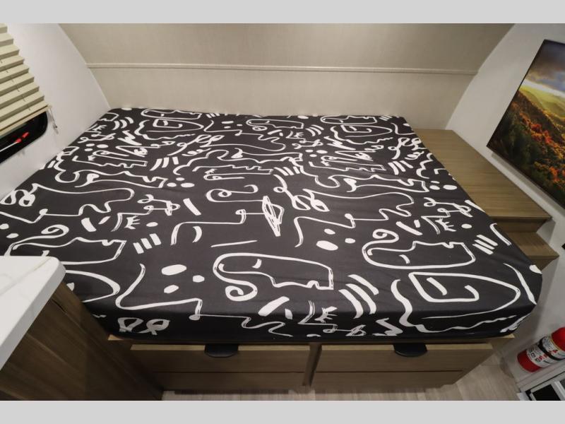 This lightweight travel trailer has everything you need to enjoy camping trips! There is a front east to west custom king bed with storage at the foot of the bed and overhead for your valuables. A private bath includes a toilet and walk-in shower so you can easily get ready each day, and you can prepare your meals on the two-burner cooktop when you get hungry. The booth dinette will provide dining space, along with sleeping space for one to two little ones. Don't let this trailer get away!
