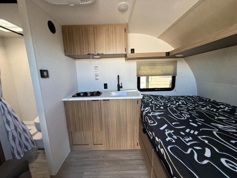This lightweight travel trailer has everything you need to enjoy camping trips! There is a front east to west custom king bed with storage at the foot of the bed and overhead for your valuables. A private bath includes a toilet and walk-in shower so you can easily get ready each day, and you can prepare your meals on the two-burner cooktop when you get hungry. The booth dinette will provide dining space, along with sleeping space for one to two little ones. Don't let this trailer get away!