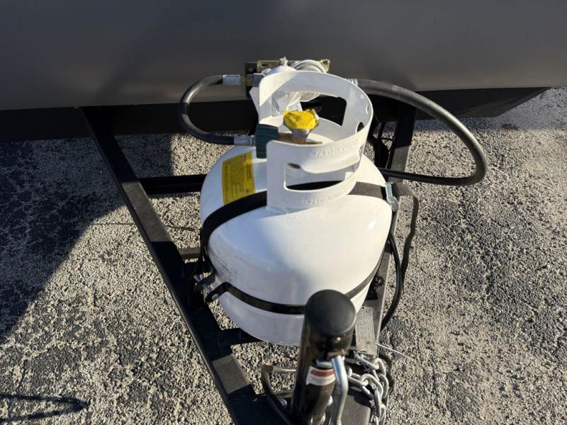 This lightweight travel trailer has everything you need to enjoy camping trips! There is a front east to west custom king bed with storage at the foot of the bed and overhead for your valuables. A private bath includes a toilet and walk-in shower so you can easily get ready each day, and you can prepare your meals on the two-burner cooktop when you get hungry. The booth dinette will provide dining space, along with sleeping space for one to two little ones. Don't let this trailer get away!