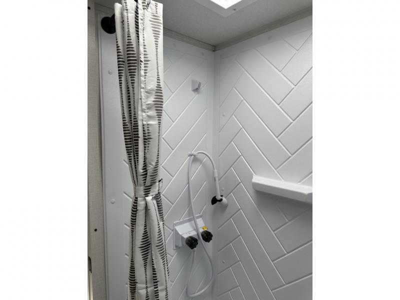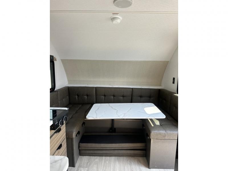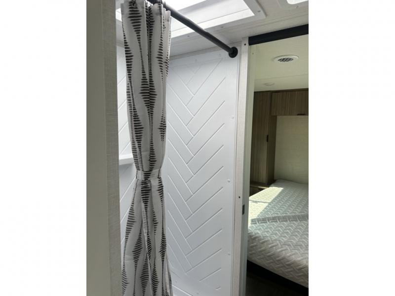 Pack your bags and head to the campground in this cozy travel trailer. Once you arrive you can make lunch on the outside kitchen, and there is a 15' power awning with LED lights to enjoy an outdoor living space. The U-shaped dinette inside will be perfect for meal times and game night, plus this space can double as additional sleeping space if you have guests. There is a separated bath, with the toilet and sink in one room, and the shower across the hall so two people can freshen up at the same. And don't overlook the rear bedroom with a queen bed, dual wardrobes, plus an overhead cabinet for your things.