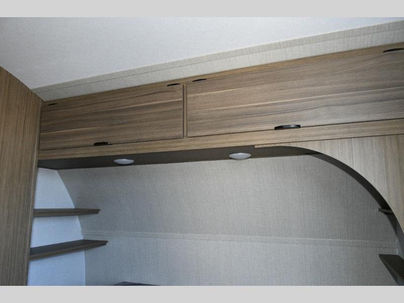 Front Queen Bed – Your own cozy retreat with dual wardrobes to keep clothes and gear neatly tucked away.