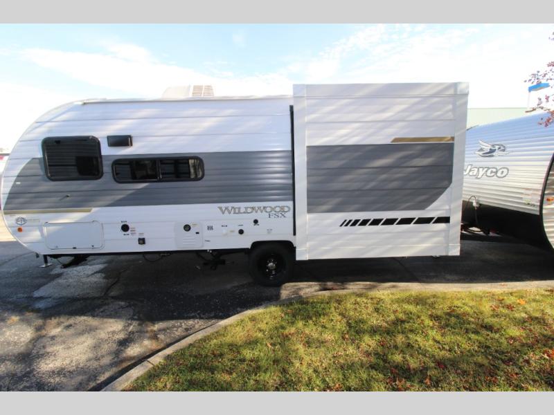 The Forest River Wildwood FSX travel trailers and toy hauler travel trailers are ultra comfortable and lightweight, perfect for first time or seasoned campers alike! You will love how easy it will be to relax with residential features that will make your space feel just like home, and the durable construction means you can enjoy your RV for years to come. There are a wide variety of floorplans to choose from, including couple's trailers, bunk models, and toy haulers, all with full bath and kitchen amenities and plenty of storage for all your gear!