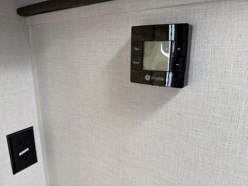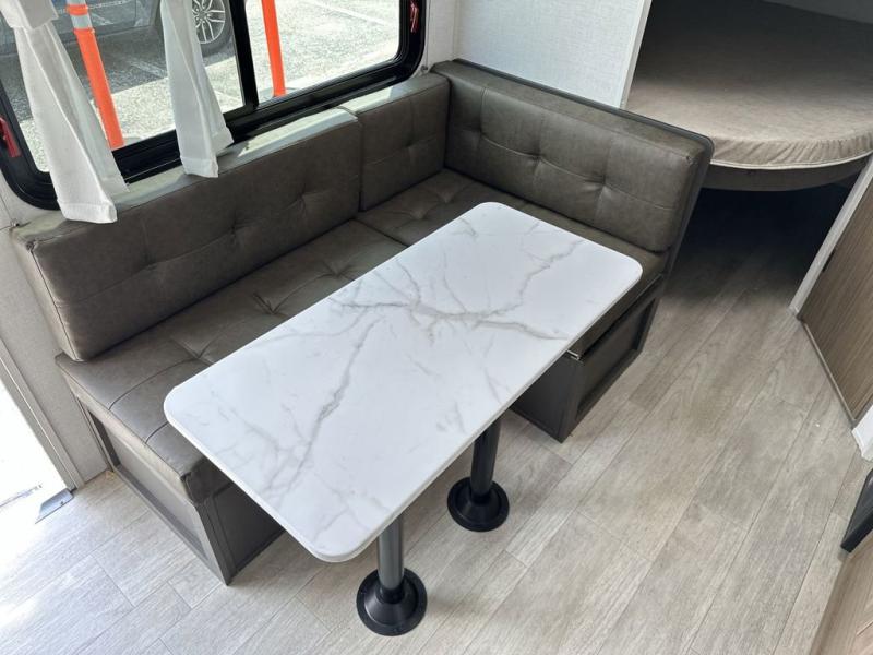 The double-size bunks with storage will be a big selling point in this travel trailer! While your guests take the bunks, you can have the front queen bed all to yourselves, and there is a wardrobe to keep your things organized. A two-burner cooktop and microwave will let you make meals each day, and you can dine at the open lounge with a table.
