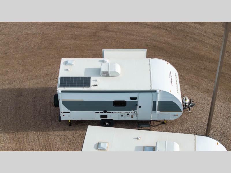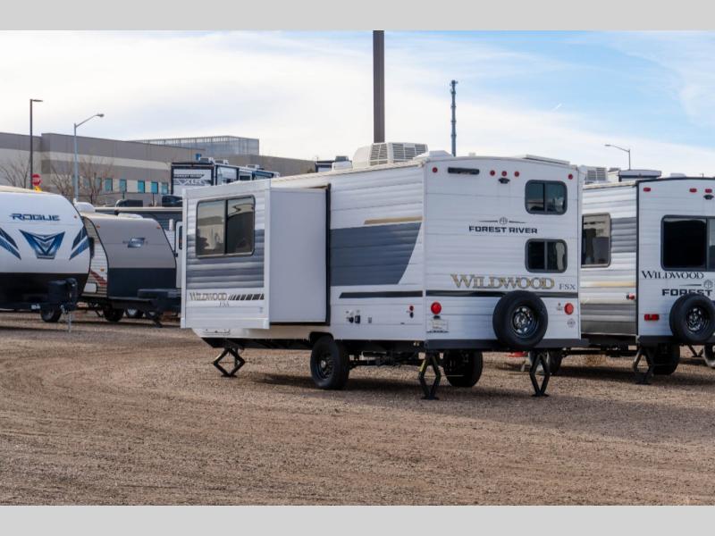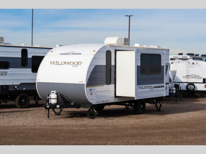 The Forest River Wildwood FSX travel trailer and toy haulers are easy to tow and easy to love, so come take a look! They are constructed with an xtrmPly, one-piece seamless PVC roof membrane, a steel I-beam frame, and diamond plate rock guard for added protection against debris during transport. The Best In Class Value Package includes a 200W expandable roof mount solar panel, a 10' plus cubic refrigerator, a seamless countertop, and an on-demand tankless water heater with active freeze protection to name a few features. The FSX Family Camping Package includes even more hassle-free features, such a, a 13.5 BTU roof mounted A/C, a power vent fan, stabilizer jacks, and more!
