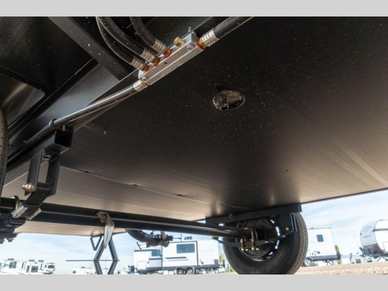 Bring your whole crew along for trips in this roomy travel trailer that can sleep eight people each night. Once you've set up the 15' power awning with LED lights, make lunch on the outdoor kitchen with a griddle and mini fridge. Explore some trails or take your fishing poles down to the river, then head back to the trailer to clean up in the full bath. The kids may want to rest on the double-size bunks, while the adults play a game around the U-shaped dinette. This model also includes a sofa to relax on, plus a Murphy bed that lowers over the sofa when you're ready for bed. Don't let this travel trailer slip away!