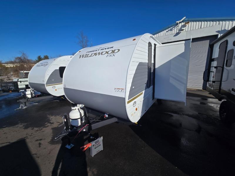 The Forest River Wildwood FSX travel trailers and toy hauler travel trailers are ultra comfortable and lightweight, perfect for first time or seasoned campers alike! You will love how easy it will be to relax with residential features that will make your space feel just like home, and the durable construction means you can enjoy your RV for years to come. There are a wide variety of floorplans to choose from, including couple's trailers, bunk models, and toy haulers, all with full bath and kitchen amenities and plenty of storage for all your gear!