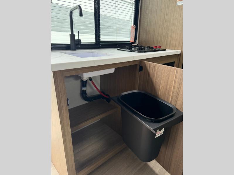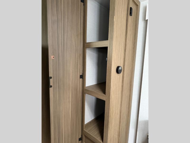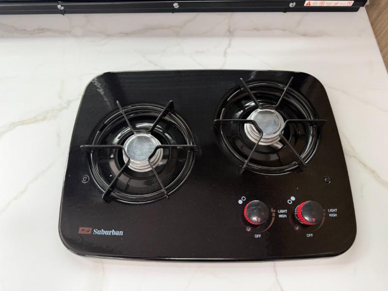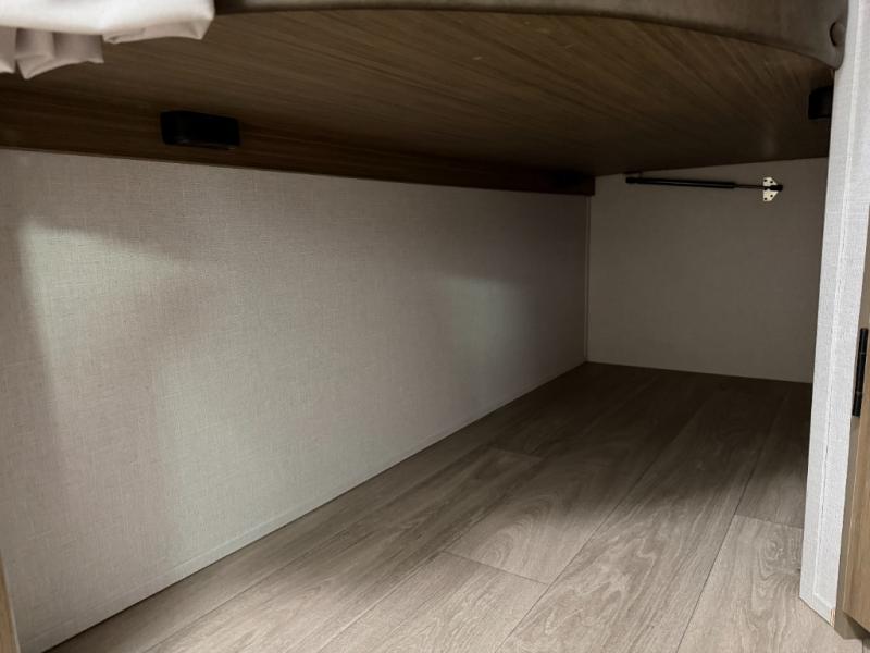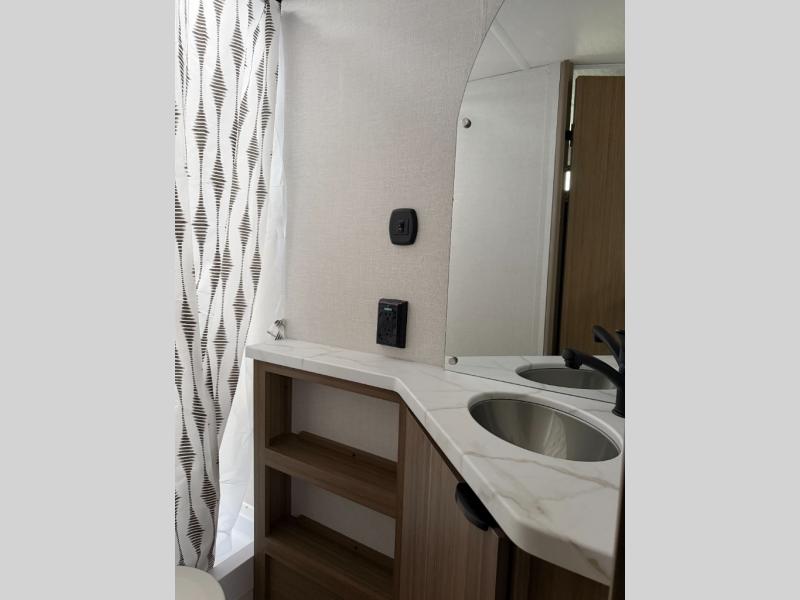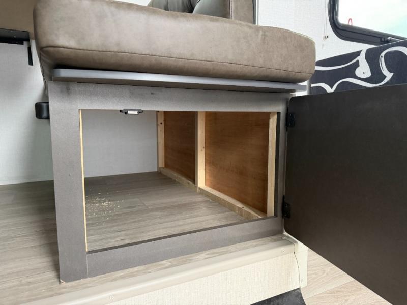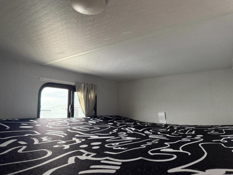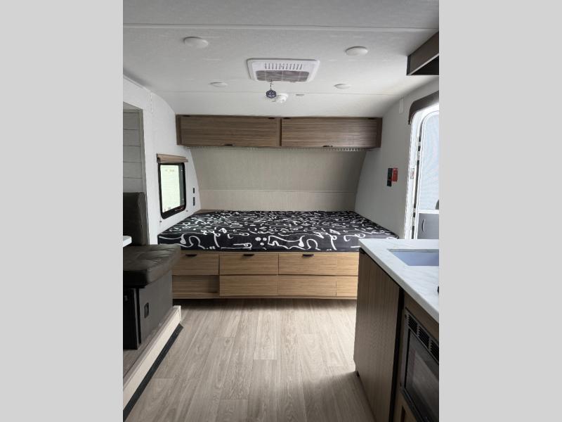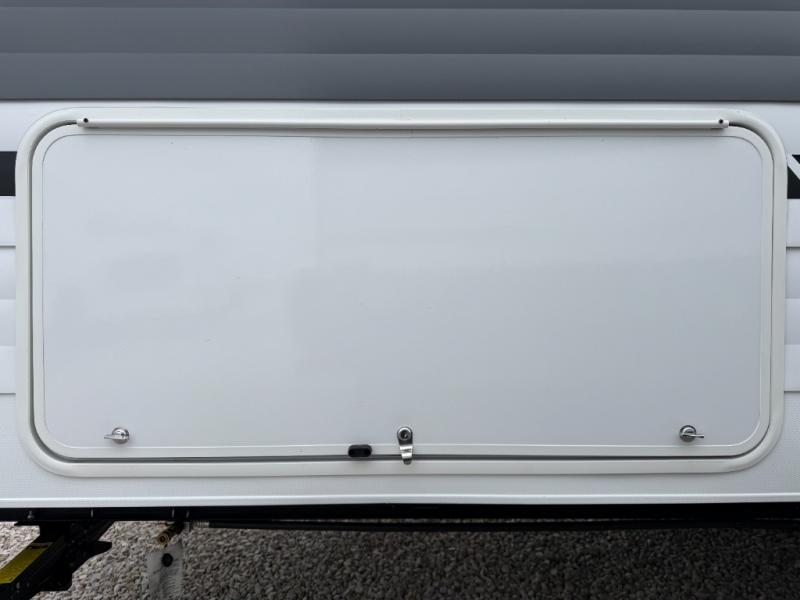 It will be so easy to enjoy time spent in this travel trailer for seven. The front queen bed provides a great night's rest, and there is an overhead cabinet to keep your things organized. Your guests or little ones can claim the double-size bunks for themselves, and there is a full bath adjacent to the bunks for easy nighttime use. A two-burner cooktop in the kitchen will let you make meals for your crew, and a refrigerator keeps leftovers fresh. You can dine at the booth dinette within the slide out or take your plate outdoors to sit under the 15' power awning.