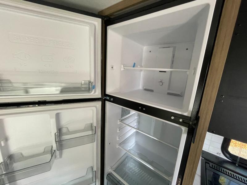 If you love to take trips to the great outdoors, you should take them in this Wildwood X-Lite travel trailer! This trailer is the perfect complement to your weekend away because it has a set of double-size bunks for your kids, yet it is still lightweight. The bathroom has a walk-in shower to help you get ready each morning, and the vanity is located just outside of the bathroom door so that someone else can use the sink at the same time that another camper is showering. The kitchen is filled with excellent amenities, like the double sink and refrigerator, and you can use the booth dinette to sit down and eat any meal that you've prepared in the kitchen.