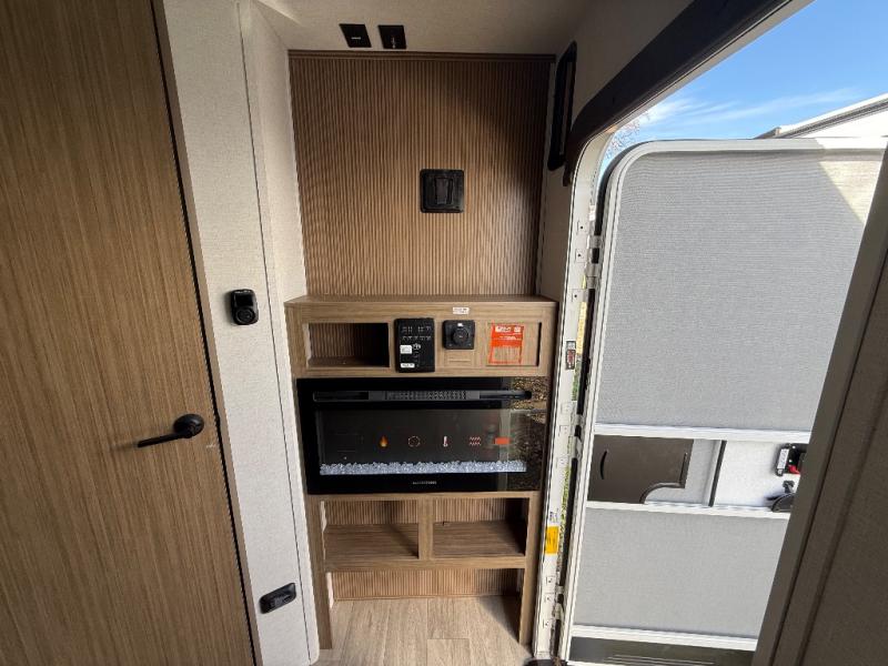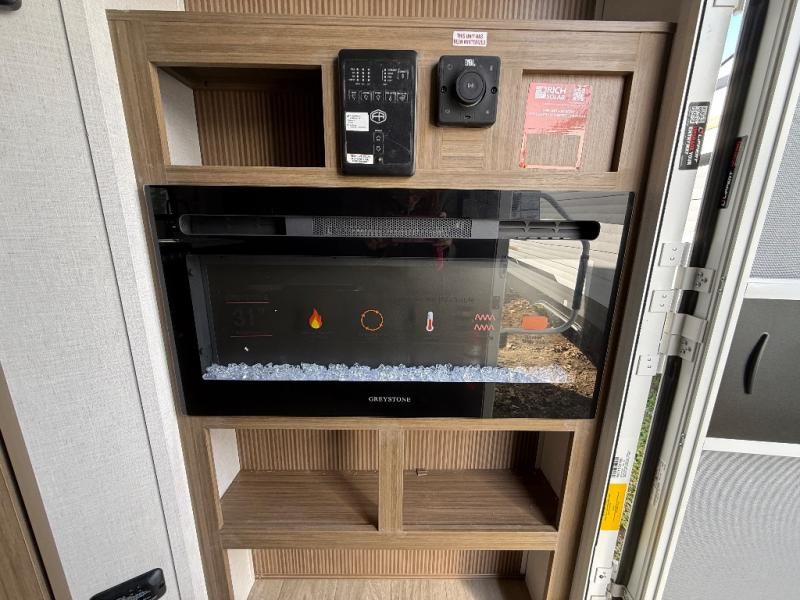 This toy hauler is packed to the Max with standard features and comforts. Once you unload your toys from the garage with a total of 13' 4" cargo space, you can enjoy lunch at the sofa/sleepers with a table. The kitchen includes a 12V refrigerator, and everyone will love the fireplace for a more at-home feel. Head through the bath to enjoy the front master bedroom with a king bed and dual wardrobes for your clothes!