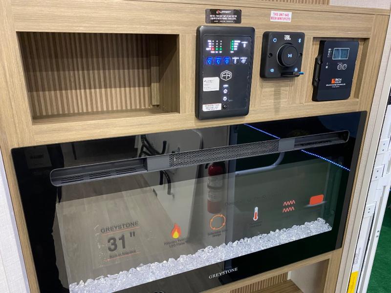 This toy hauler is packed to the Max with standard features and comforts. Once you unload your toys from the garage with a total of 13' 4" cargo space, you can enjoy lunch at the sofa/sleepers with a table. The kitchen includes a 12V refrigerator, and everyone will love the fireplace for a more at-home feel. Head through the bath to enjoy the front master bedroom with a king bed and dual wardrobes for your clothes!
