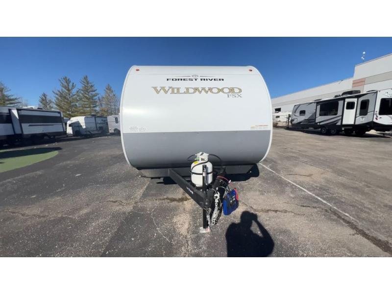 The Forest River Wildwood FSX Limited Edition travel trailer is easy to tow and easy to love, so come take a look! You'll appreciate the aerodynamic front profile, diamond plate front rock guard, and seamless holding tanks. The 26" entry doors are easy to access. Nitrogen filled tires offer a smooth ride, but there's a full-size spare tire if you happen to need it. A dedicated cable TV hookup is located on the exterior, so you can settle in under the power awning and watch some TV.