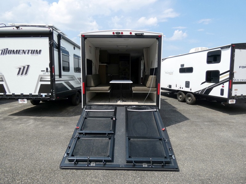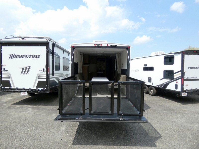 Take your adventures to the max in this MAX toy hauler with more space and features! Unload your dirt bikes from the 14' garage, then convert this space to the 1,500 lb. capacity patio. This model includes two sofa sleepers with a table to dine and let guests sleep over. The main living area will feel more like home with a fireplace, and the full kitchen will allow you to prepare meals for your whole group. If you enjoy cooking outdoors then you will love the outdoor griddle and refrigerator, plus there is an 18' power awning here for shade. After dinner is cleaned up, head to the front private bedroom for a great night's rest and plan to do it all over again tomorrow!