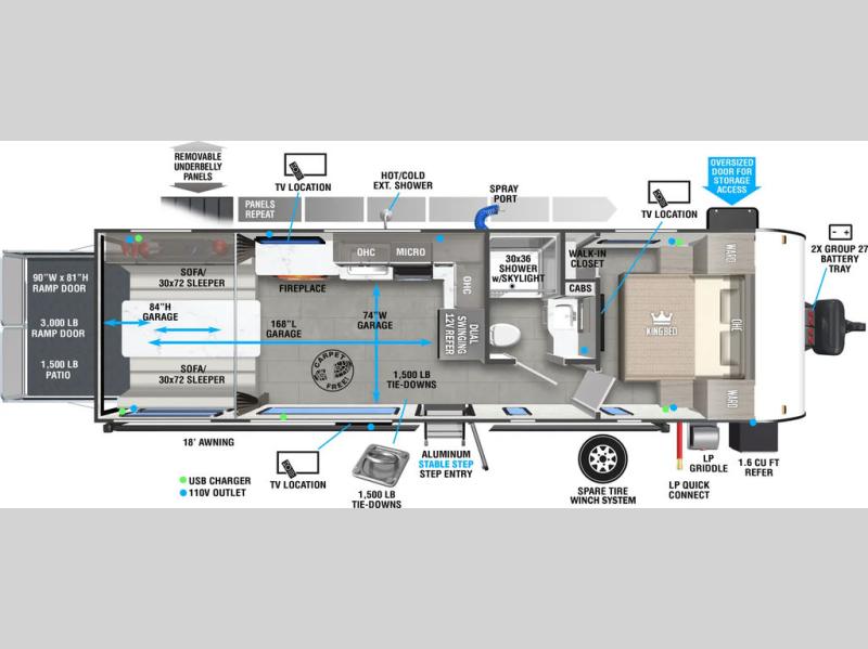 | Awning Info | 18' Power with adjustable legs and LED light strip |