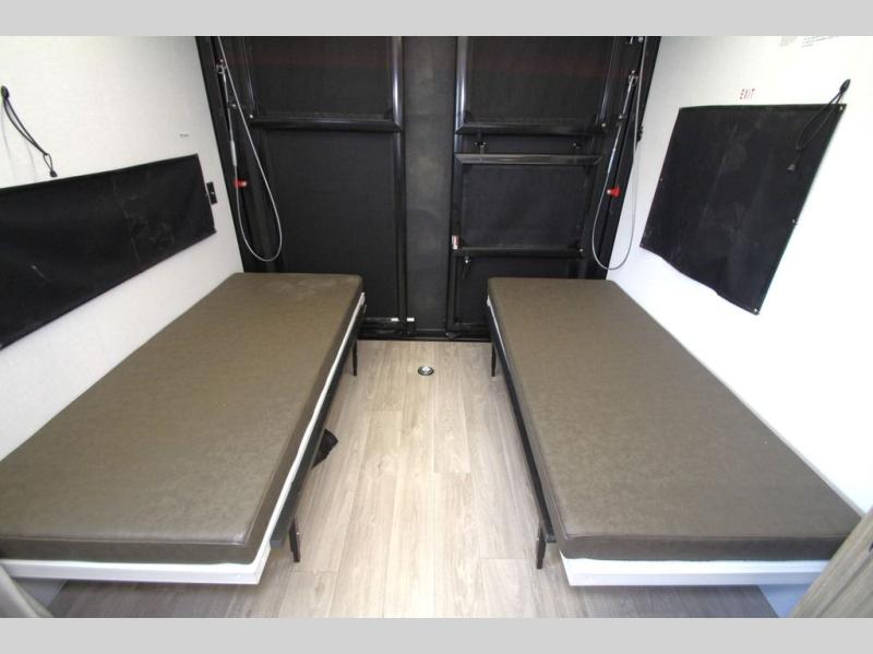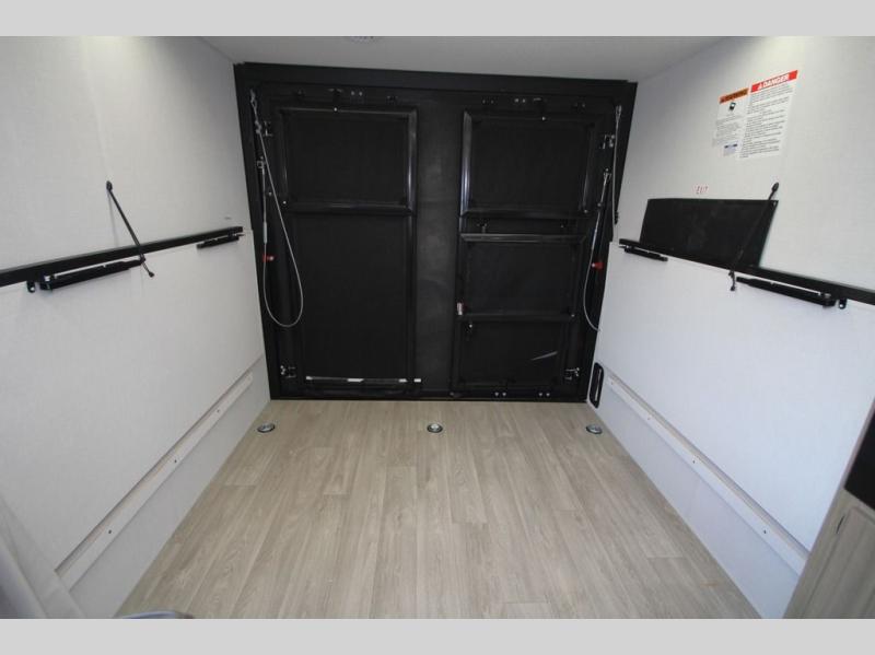 Take your adventures to the max in this MAX toy hauler with more space and features! Unload your dirt bikes from the 14' garage, then convert this space to the 1,500 lb. capacity patio. This model includes two sofa sleepers with a table to dine and let guests sleep over. A full kitchen with a three-burner cooktop, convection microwave and 12V refrigerator will let you make meals each day. After dinner is cleaned up, head to the front private bedroom for a great night's rest and plan to do it all over again tomorrow!