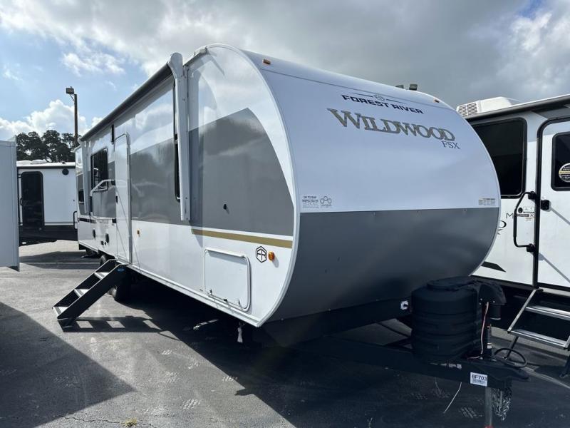 The Forest River Wildwood FSX travel trailers and toy hauler travel trailers are ultra comfortable and lightweight, perfect for first time or seasoned campers alike! You will love how easy it will be to relax with residential features that will make your space feel just like home, and the durable construction means you can enjoy your RV for years to come. There are a wide variety of floorplans to choose from, including couple's trailers, bunk models, and toy haulers, all with full bath and kitchen amenities and plenty of storage for all your gear!