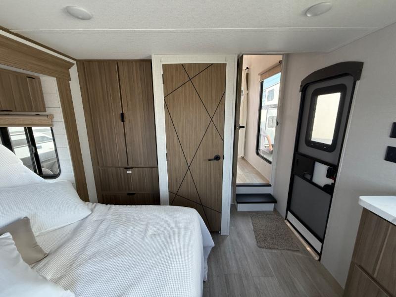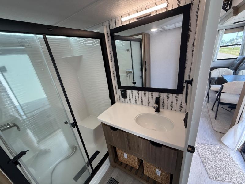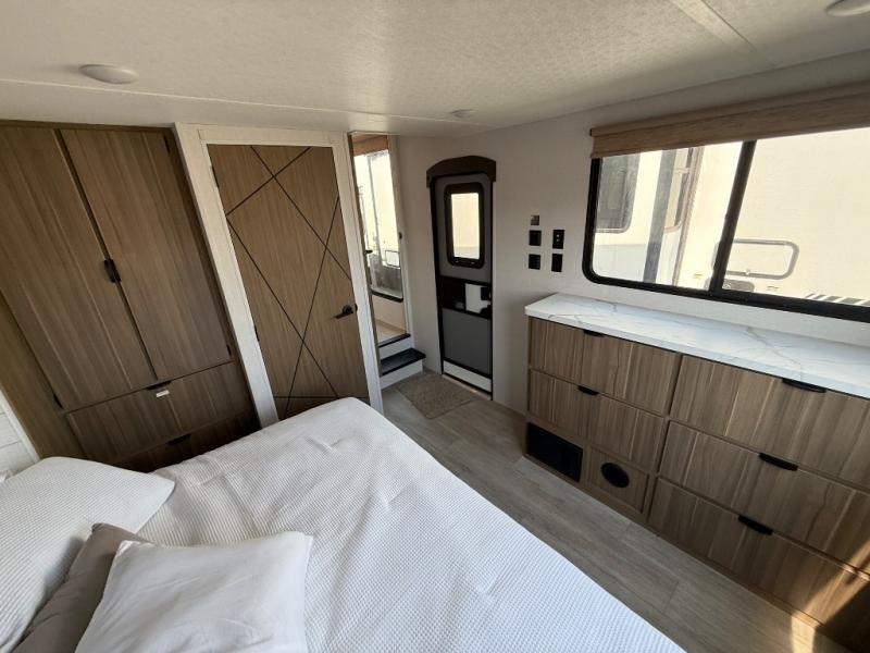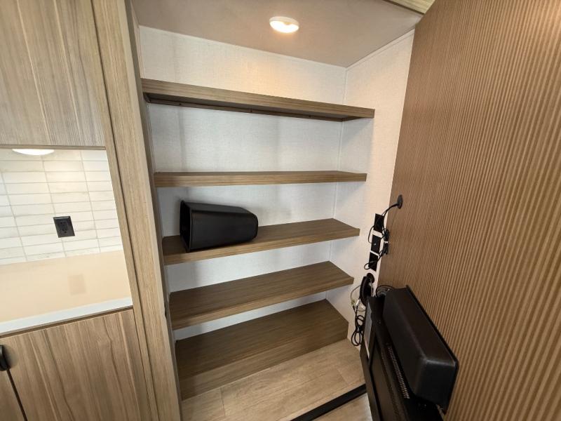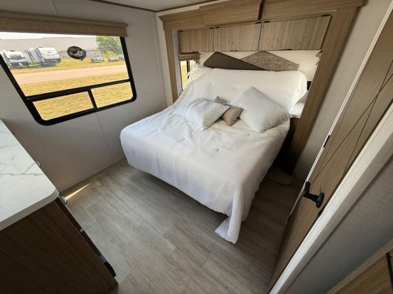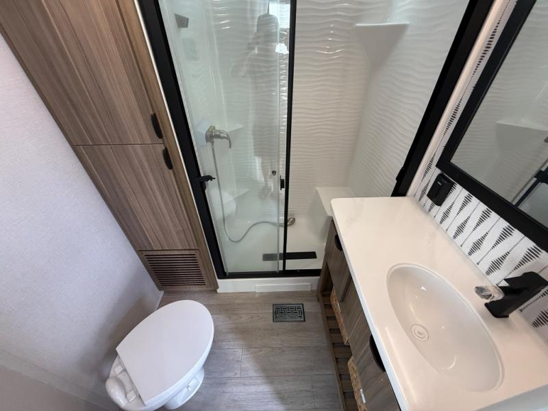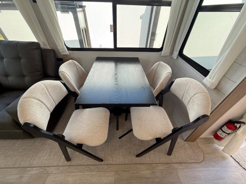 With any Wildwood Grand Lodge destination trailer by Forest River, you can enjoy extended stays wherever you go! There is 4K awning blade lighting outside, along with slide out awning toppers, plus a heated and enclosed Accessibelly for added protection. Inside, you'll love the stylish backsplash update, elegant curtain rods and curtains, TFL black walnut entertainment shelves, and stainless steel kitchen appliances. A Serta mattress in the bedroom(s) will provide comfort to each journey, and there is a tankless water heater for hot water when you need it.