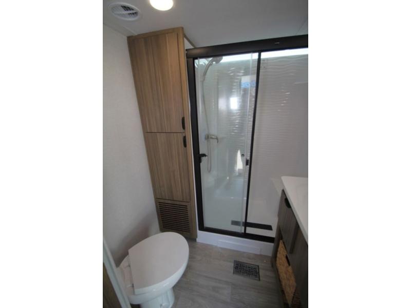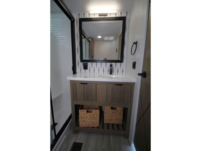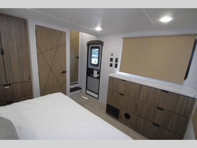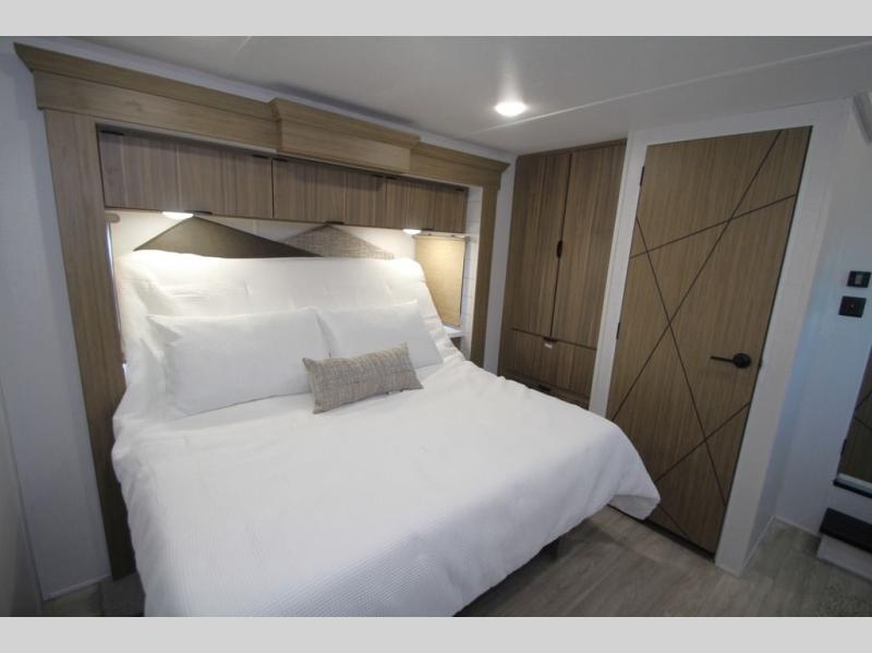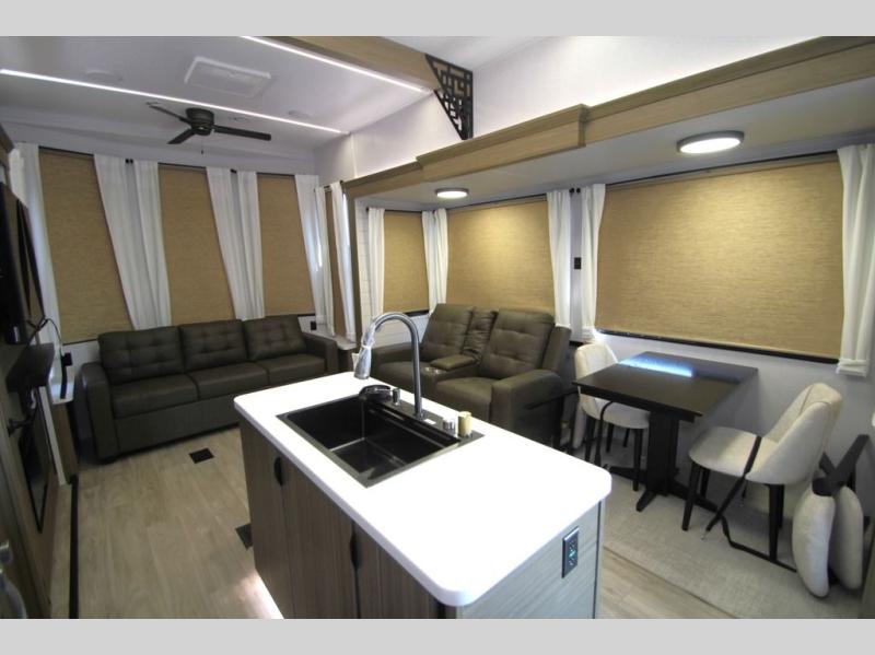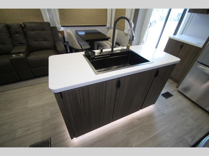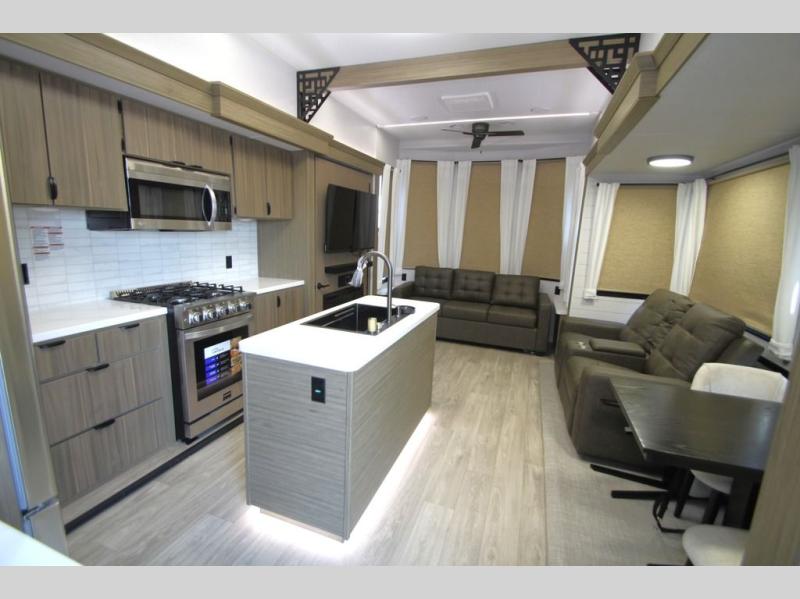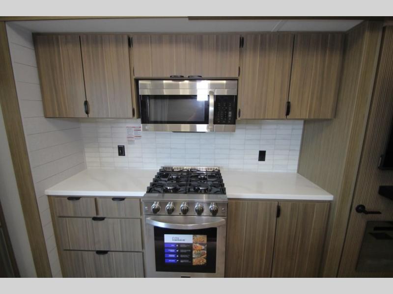 With any Wildwood Grand Lodge destination trailer by Forest River, you can enjoy extended stays wherever you go! There is 4K awning blade lighting outside, along with Tufflex PVC roofing, plus a heated and enclosed Accessibelly for added protection. Inside, you'll love the stylish backsplash update, elegant curtain rods and curtains, TFL black walnut entertainment shelves, and stainless-steel kitchen appliances. A Serta mattress in the bedroom(s) will provide comfort to each journey, and there is a tankless water heater for hot water when you need it.