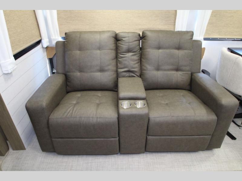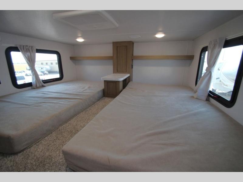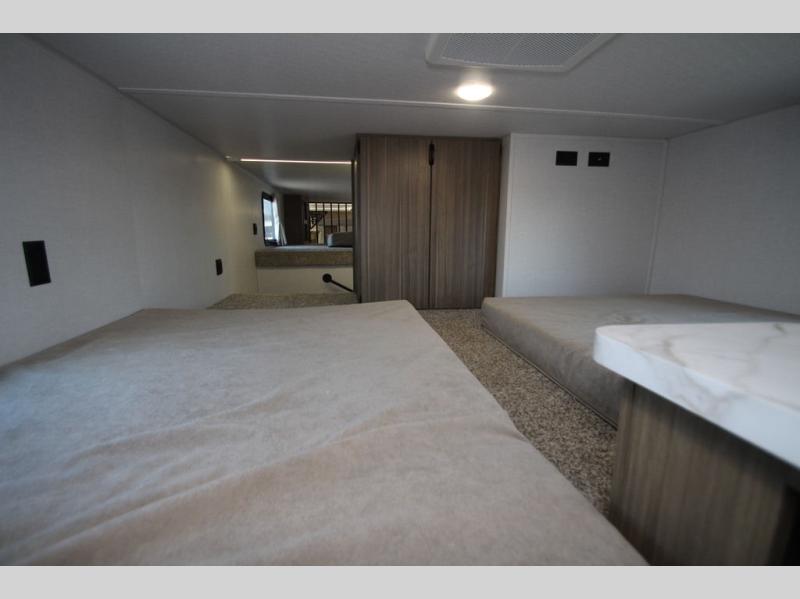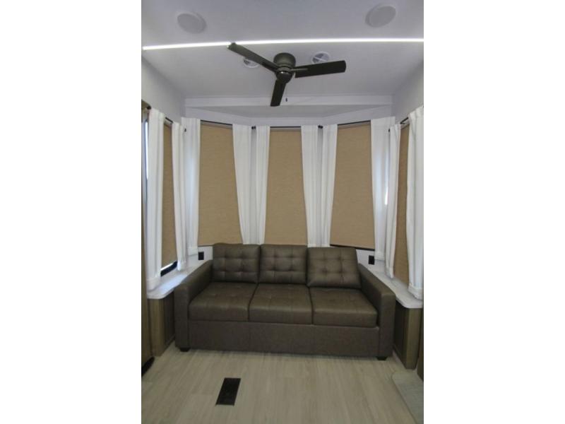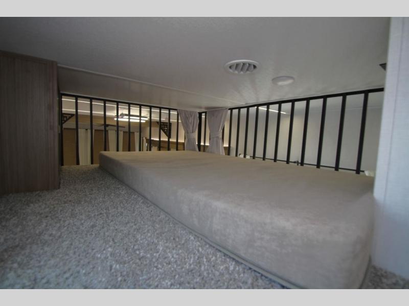 Keep your family happy by providing them with plenty of space and comforts in this Wildwood Grand Lodge destination trailer! The living area is such a gorgeous feature in this unit because of the panoramic front windows that allow you to feel as if you're right in the heart of your surroundings, and as you sit on the sofa next to the fireplace, you'll appreciate the ambiance it brings to this space. If you've decided to stay up late outside underneath the 21' awning, you can rest assured that you'll be able to get back inside quietly without waking anyone up because the second entry door leads directly into the rear private bedroom for your convenience so you can quickly fall asleep on your own king bed with versa-tilt. And the kids will love the double loft with three bunk mats and extra floor space to play.