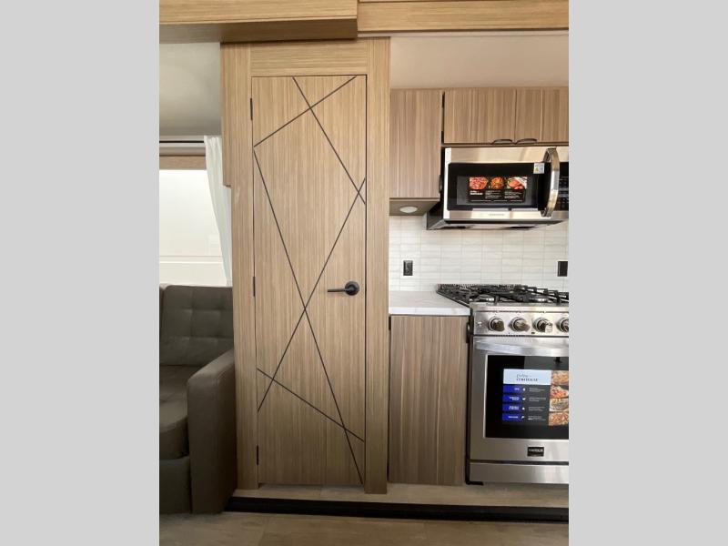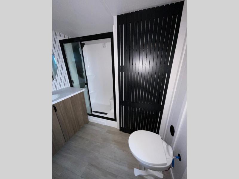 With any Wildwood Grand Lodge destination trailer by Forest River, you can enjoy extended stays wherever you go! There is 4K awning blade lighting outside, along with Tufflex PVC roofing, plus a heated and enclosed Accessibelly for added protection. Inside, you'll love the stylish backsplash update, elegant curtain rods and curtains, TFL black walnut entertainment shelves, and stainless-steel kitchen appliances. A Serta mattress in the bedroom(s) will provide comfort to each journey, and there is a tankless water heater for hot water when you need it.