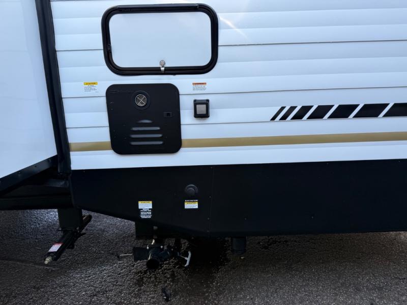 You just can't beat the Forest River Wildwood Lodge destination trailer! These trailers create the perfect camping destination in and of themselves. There is a new retro/metal redesign that is sure to turn heads at the campground, and the heated and enclosed Accessibelly provides added protection against the elements. Each model includes stainless steel kitchen appliances, a central vacuum with a sweep attachment, a Serta mattress, and kitchen backsplash to name a few comforts. Additional stand-out features include TFL cabinet doors, LED "Blade Lighting' under the awning, stylish roller shades, plus Lippert On-The-Go ladder prep for the option to add a ladder.