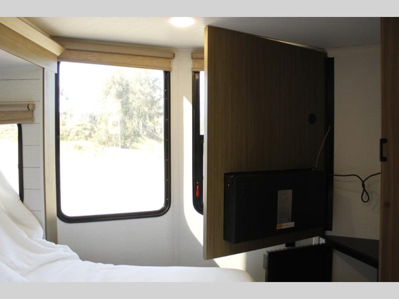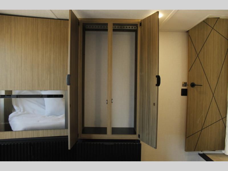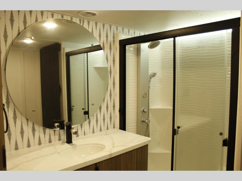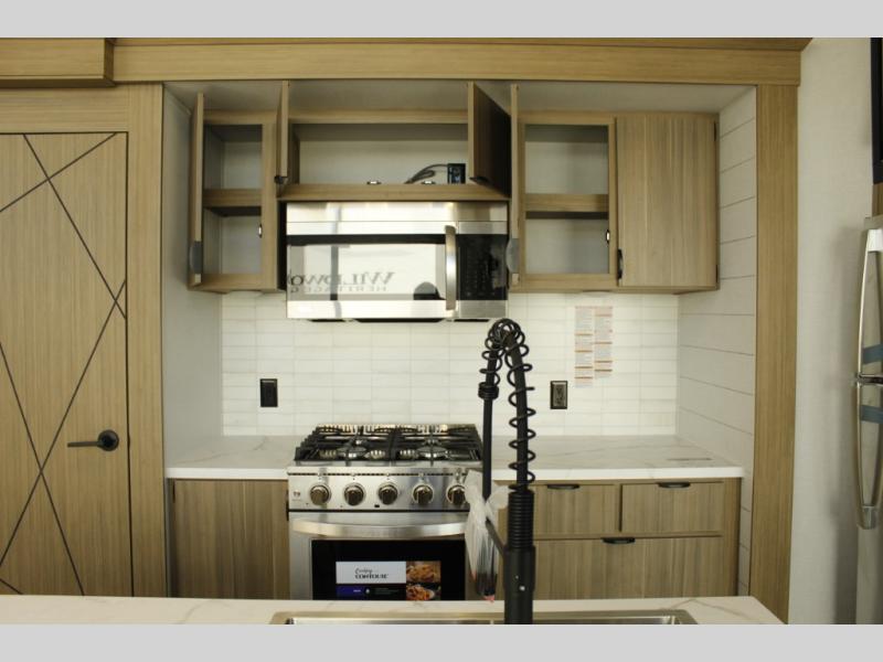With any Wildwood Grand Lodge destination trailer by Forest River, you can enjoy extended stays wherever you go! There is 4K awning blade lighting outside, along with Tufflex PVC roofing, plus a heated and enclosed Accessibelly for added protection. Inside, you'll love the stylish backsplash update, elegant curtain rods and curtains, TFL black walnut entertainment shelves, and stainless-steel kitchen appliances. A Serta mattress in the bedroom(s) will provide comfort to each journey, and there is a tankless water heater for hot water when you need it.
