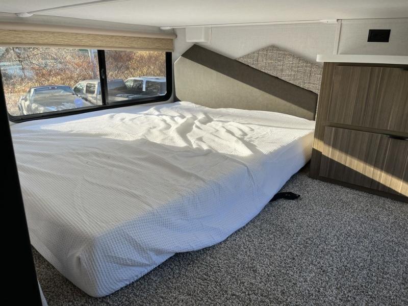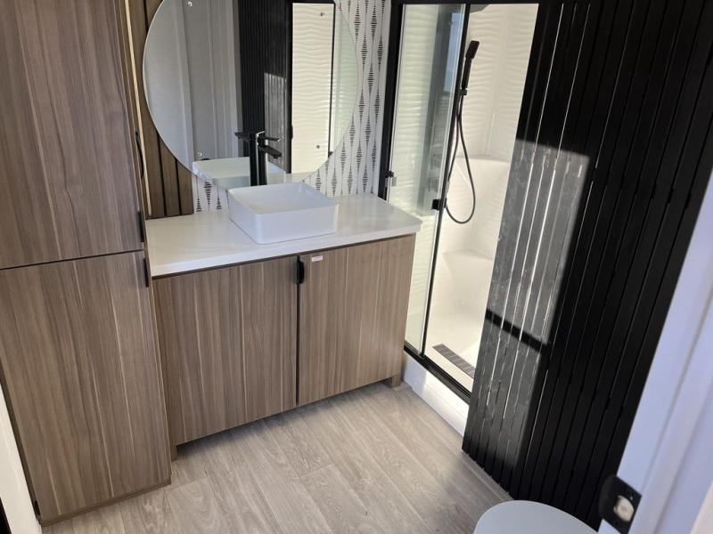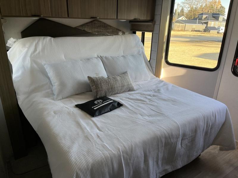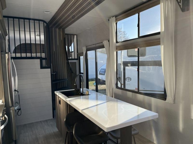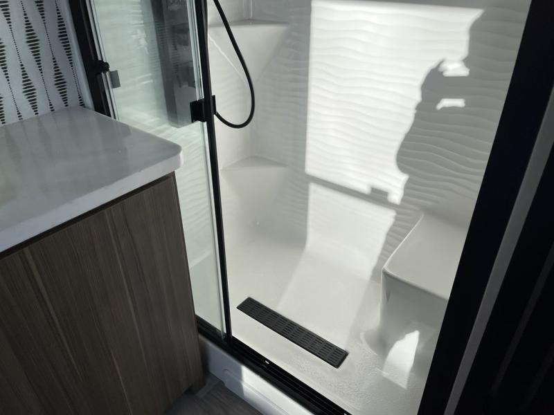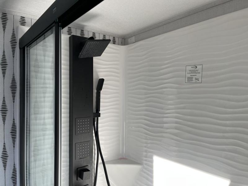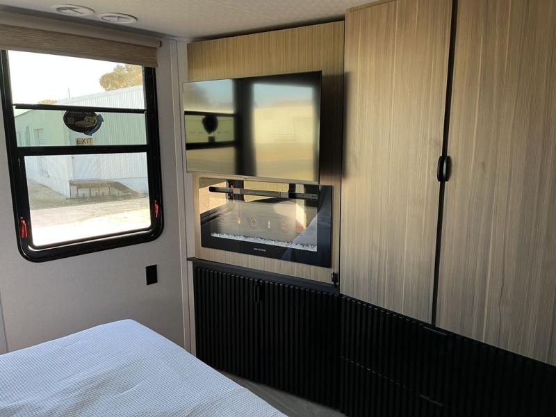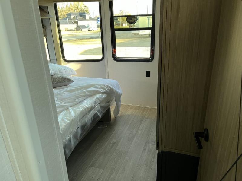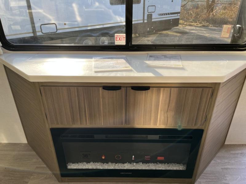 With any Wildwood Grand Lodge destination trailer by Forest River, you can enjoy extended stays wherever you go! There is 4K awning blade lighting outside, along with Tufflex PVC roofing, plus a heated and enclosed Accessibelly for added protection. Inside, you'll love the stylish backsplash update, elegant curtain rods and curtains, TFL black walnut entertainment shelves, and stainless-steel kitchen appliances. A Serta mattress in the bedroom(s) will provide comfort to each journey, and there is a tankless water heater for hot water when you need it.