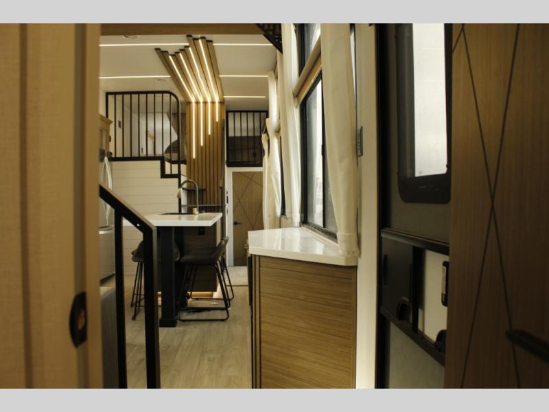 With any Wildwood Grand Lodge destination trailer by Forest River, you can enjoy extended stays wherever you go! There is 4K awning blade lighting outside, along with Tufflex PVC roofing, plus a heated and enclosed Accessibelly for added protection. Inside, you'll love the stylish backsplash update, elegant curtain rods and curtains, TFL black walnut entertainment shelves, and stainless-steel kitchen appliances. A Serta mattress in the bedroom(s) will provide comfort to each journey, and there is a tankless water heater for hot water when you need it.