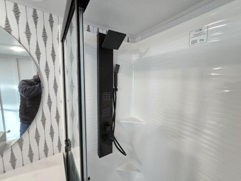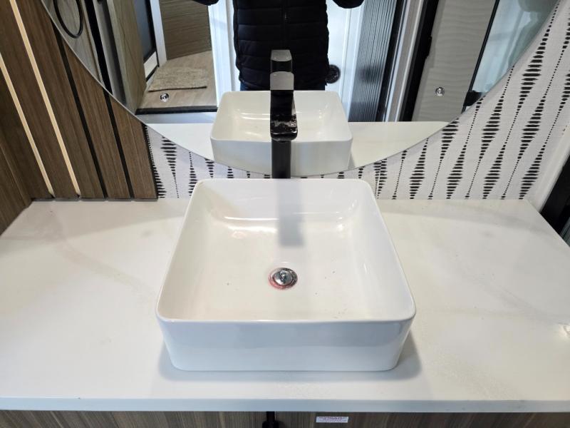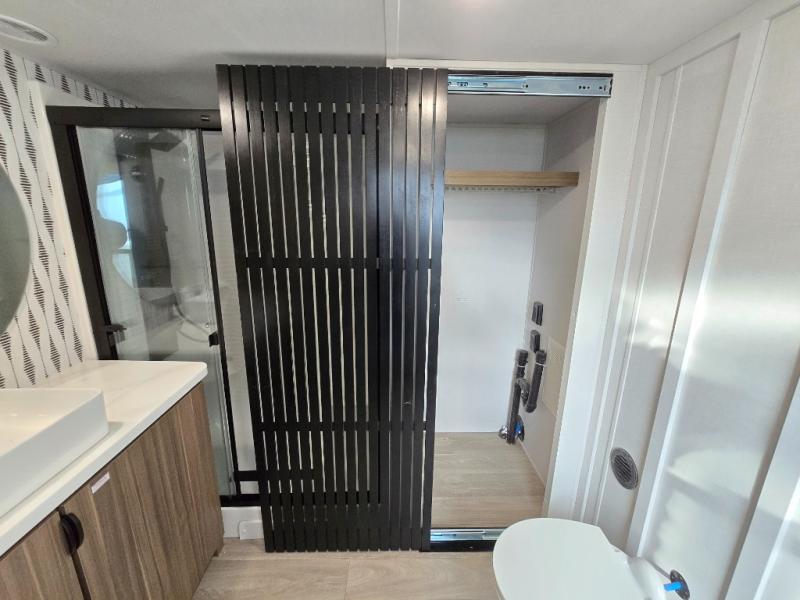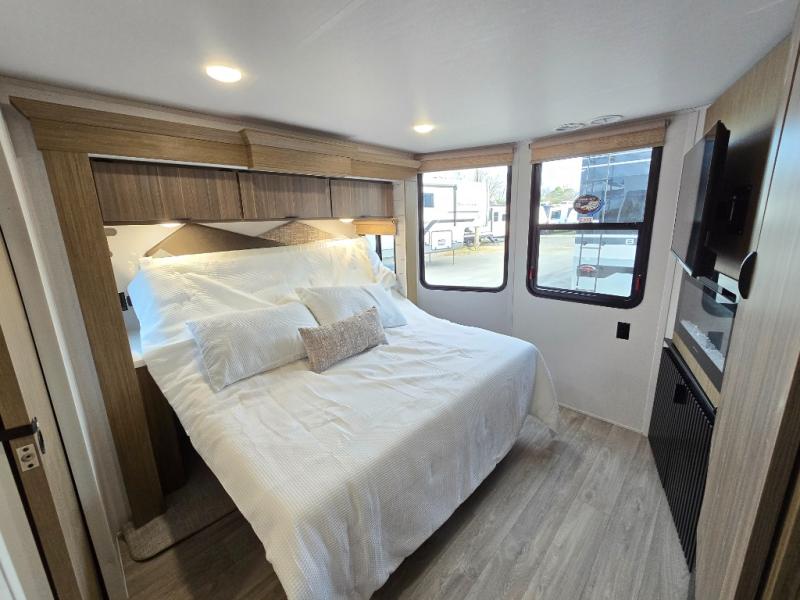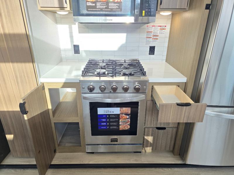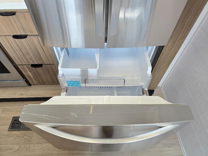 With any Wildwood Grand Lodge destination trailer by Forest River, you can enjoy extended stays wherever you go! There is 4K awning blade lighting outside, along with Tufflex PVC roofing, plus a heated and enclosed Accessibelly for added protection. Inside, you'll love the stylish backsplash update, elegant curtain rods and curtains, TFL black walnut entertainment shelves, and stainless-steel kitchen appliances. A Serta mattress in the bedroom(s) will provide comfort to each journey, and there is a tankless water heater for hot water when you need it.