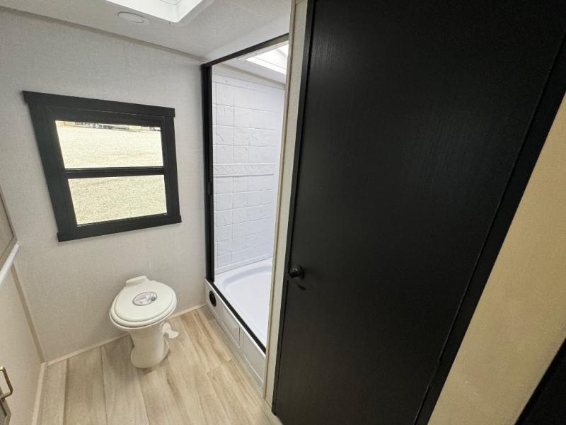 With any Wildwood Heritage Glen travel trailer by Forest River, the quality construction, attention to detail and design along with a bright and welcoming interior allows you to relax in comfort with conveniences while exploring outdoors. Each model includes a WeatherShield one piece fiberglass roof, Maxxis radial tires, and an enclosed underbelly with 12V tank heaters on all holding tanks for added protection. You will appreciate the on-demand tankless water heater, along with the 15K BTU Quite Cool A/C and 50 Amp service with a brace for a second A/C. There is an outside shower with hot and cold water, solar prep, a power tongue jack, plus many more exterior conveniences. Head inside to enjoy matte gold hardware, wood door casings in place of plastic door casings, and full length barreled ceilings for additional head room.