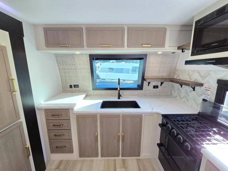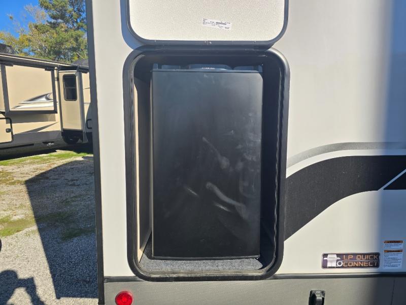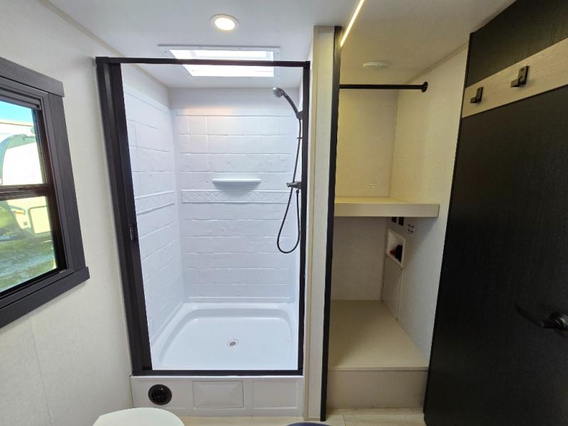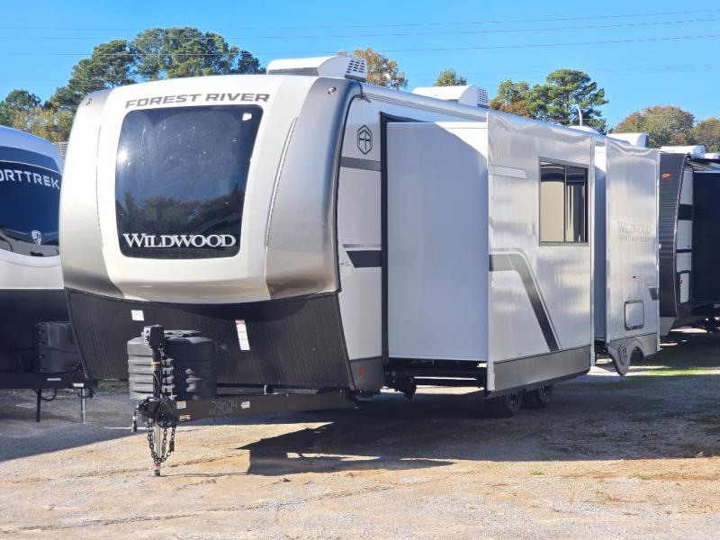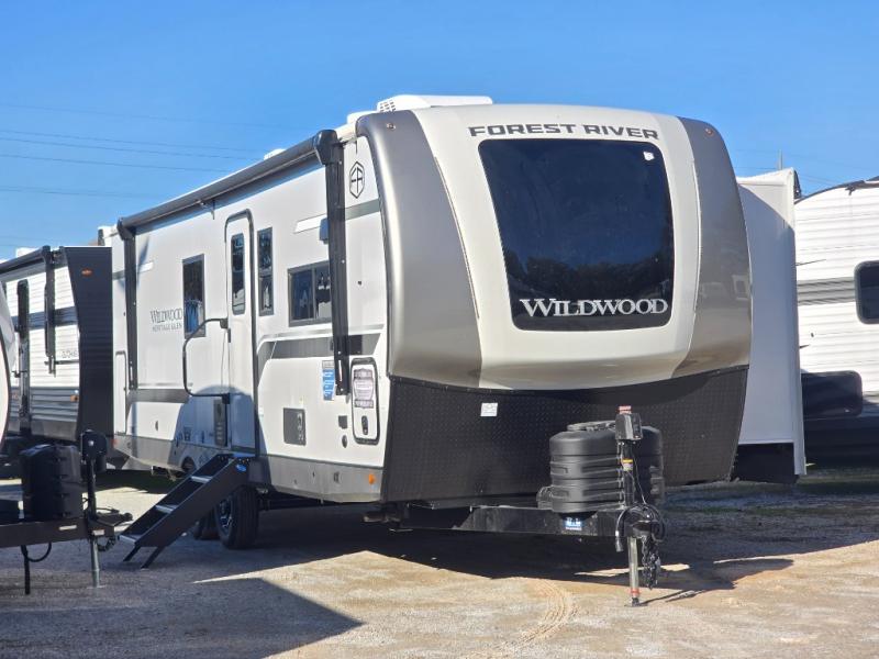 With any Wildwood Heritage Glen travel trailer by Forest River, the quality construction, attention to detail and design along with a bright and welcoming interior allows you to relax in comfort with conveniences while exploring outdoors. Each model includes a WeatherShield one piece fiberglass roof, Maxxis radial tires, and an enclosed underbelly with 12V tank heaters on all holding tanks for added protection. You will appreciate the on-demand tankless water heater, along with the 15K BTU Quite Cool A/C and 50 Amp service with a brace for a second A/C. There is an outside shower with hot and cold water, solar prep, a power tongue jack, plus many more exterior conveniences. Head inside to enjoy matte gold hardware, wood door casings in place of plastic door casings, and full length barreled ceilings for additional head room.