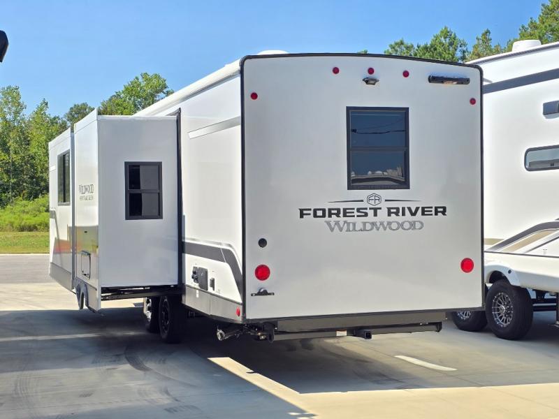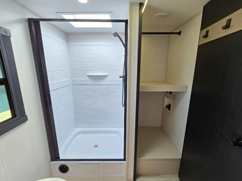 With any Wildwood Heritage Glen travel trailer by Forest River, the quality construction, attention to detail and design along with a bright and welcoming interior allows you to relax in comfort with conveniences while exploring outdoors. Each model includes a WeatherShield one piece fiberglass roof, Maxxis radial tires, and an enclosed underbelly with 12V tank heaters on all holding tanks for added protection. You will appreciate the on-demand tankless water heater, along with the 15K BTU Quite Cool A/C and 50 Amp service with a brace for a second A/C. There is an outside shower with hot and cold water, solar prep, a power tongue jack, plus many more exterior conveniences. Head inside to enjoy matte gold hardware, wood door casings in place of plastic door casings, and full length barreled ceilings for additional head room.