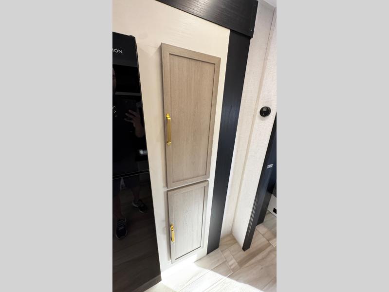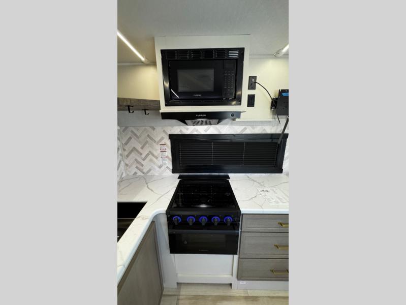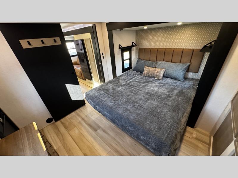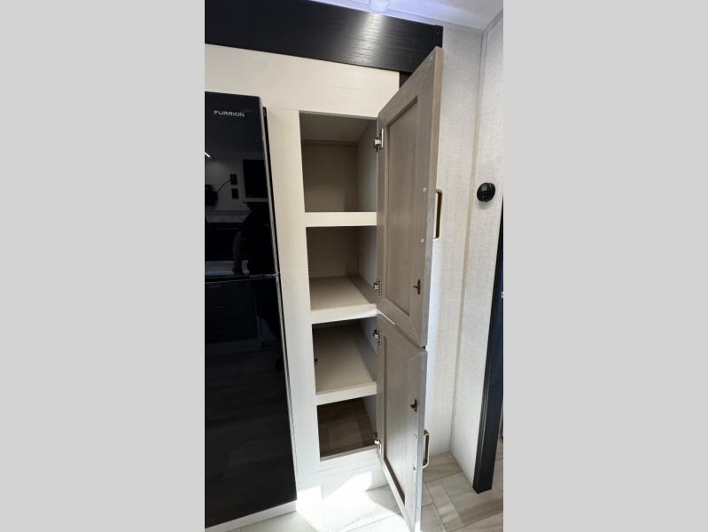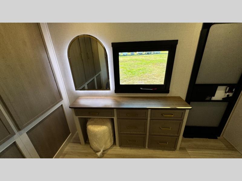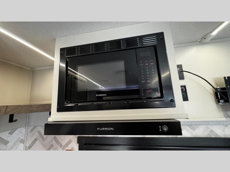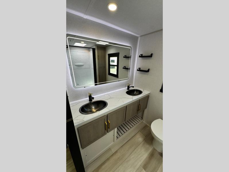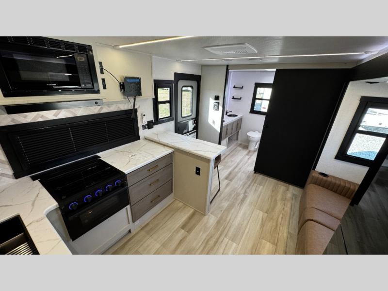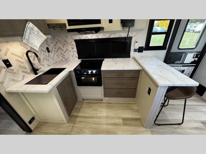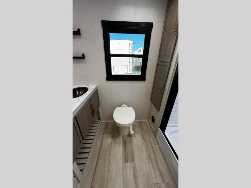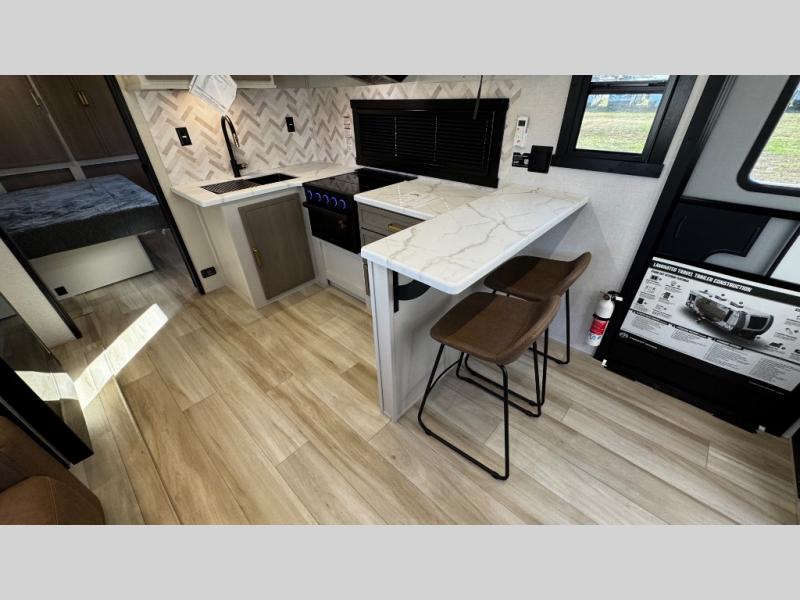 With any Wildwood Heritage Glen travel trailer by Forest River, the quality construction, attention to detail and design along with a bright and welcoming interior allows you to relax in comfort. Each model includes a WeatherShield one piece fiberglass roof, nitrogen-filled radial tires, and an enclosed underbelly with 12V tank heaters on all holding tanks for added protection. You will appreciate the on-demand tankless water heater, along with power stabilizer and tongue jacks, and an extra-large pass-thru storage with slam latch baggage doors. Head inside to enjoy matte gold hardware, wood door casings in place of plastic door casings, and an ultimate interior lighting upgrade with 4k puck/strip lights and a stylish LED back-lit bath mirror!