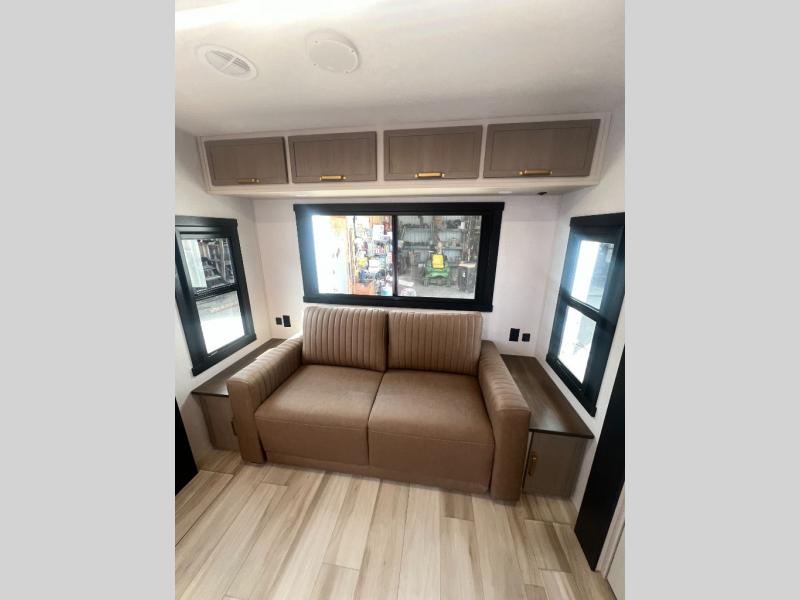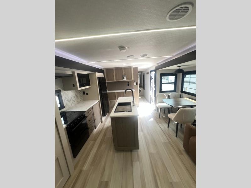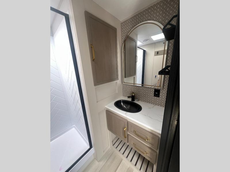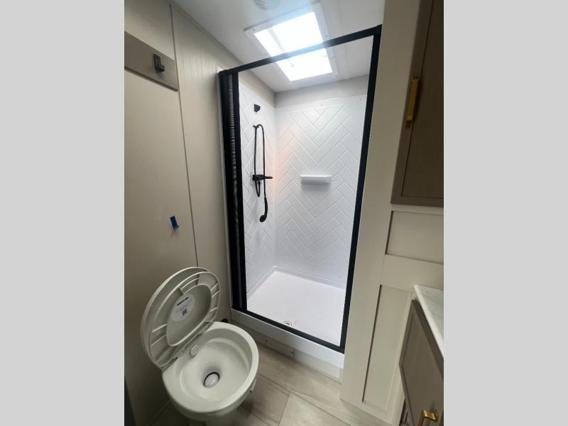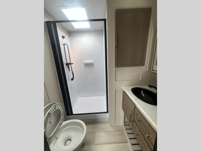With any Wildwood Heritage Glen travel trailer by Forest River, the quality construction, attention to detail and design along with a bright and welcoming interior allows you to relax in comfort with conveniences while exploring outdoors. Each model includes a WeatherShield one piece fiberglass roof, Maxxis radial tires, and an enclosed underbelly with 12V tank heaters on all holding tanks for added protection. You will appreciate the on-demand tankless water heater, along with the 15K BTU Quite Cool A/C and 50 Amp service with a brace for a second A/C. There is an outside shower with hot and cold water, solar prep, a power tongue jack, plus many more exterior conveniences. Head inside to enjoy matte gold hardware, wood door casings in place of plastic door casings, and full length barreled ceilings for additional head room.
