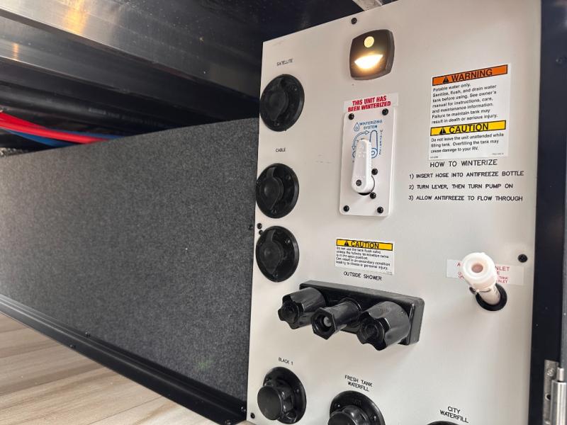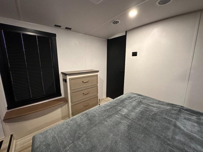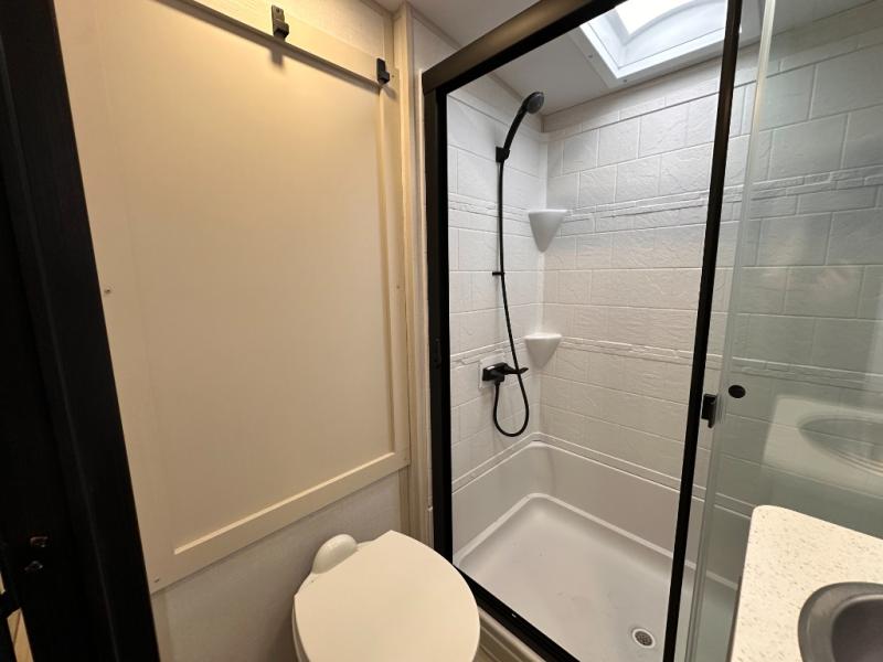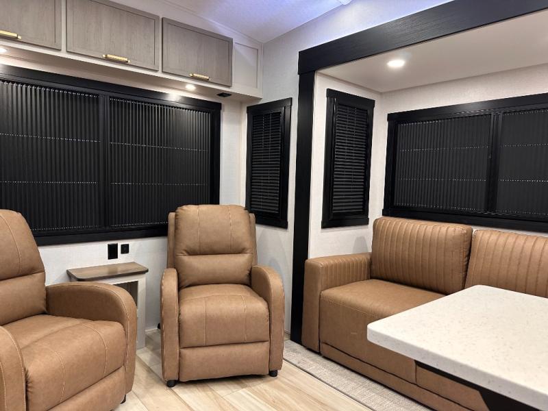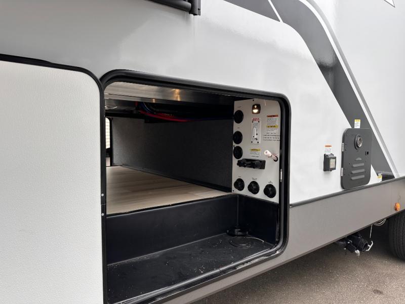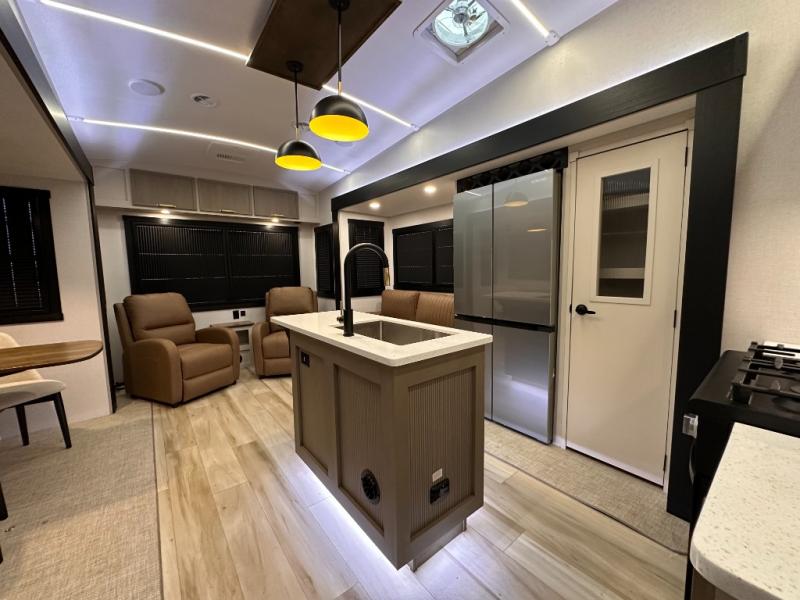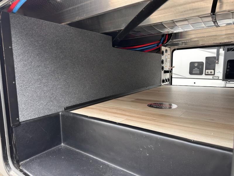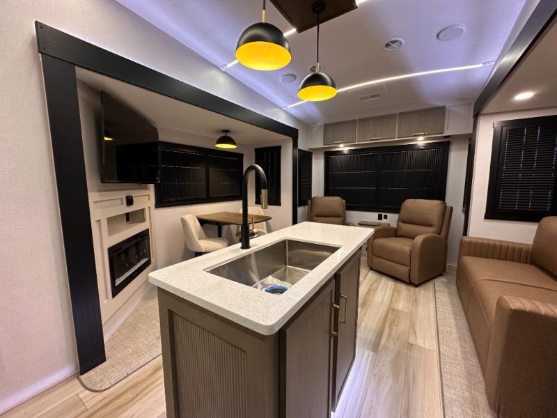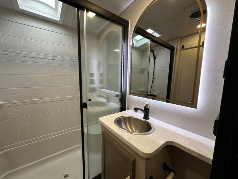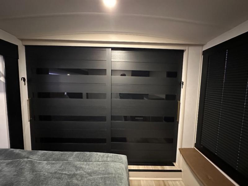 Whether you enjoy being outside or inside, this Wildwood Heritage Glen fifth wheel gives you the best of both! Imagine relaxing in a chair or on the tri-fold sofa and being able to look out panoramic windows at the scenery. Or, you might like to watch a show on the 50" LED TV with a fireplace below, and you can dine at the table and chairs that allows you to move the chairs if needed. The 16-cubic foot 12V refrigerator next to the pantry will allow you to stock up on ingredients and cold beverages for a long trip, and you will appreciate the custom king bed slide and the residential walk-in shower after being outside all day, even if just under the 13' awning. There is plenty of storage in the master bedroom and throughout, plus the XL Texas size pass-through compartment will surely come in handy for your charcoal, outdoor games, and such.
